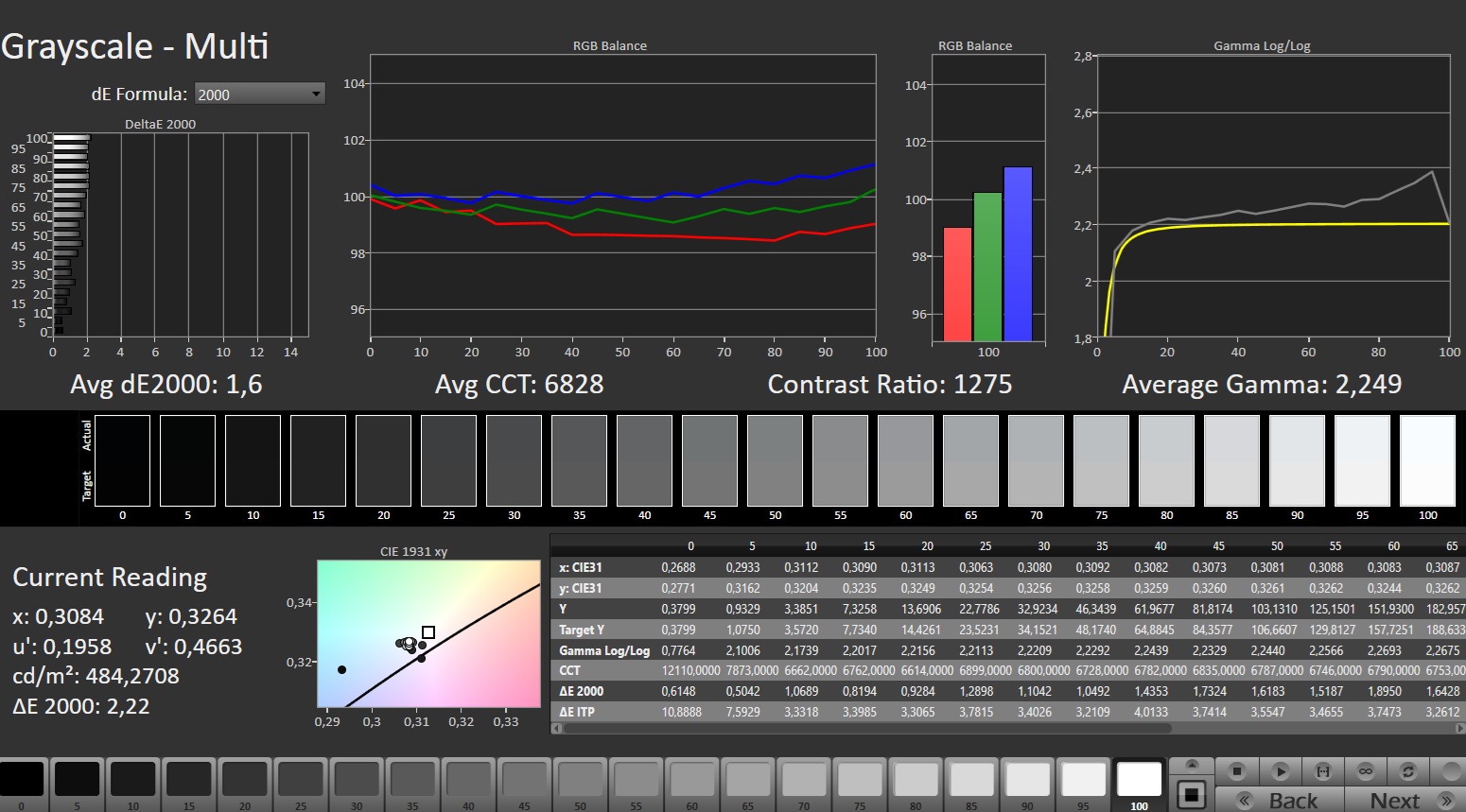 ΔE Greyscale Calman: 1.6 | ∀{0.09-98 Ø5}