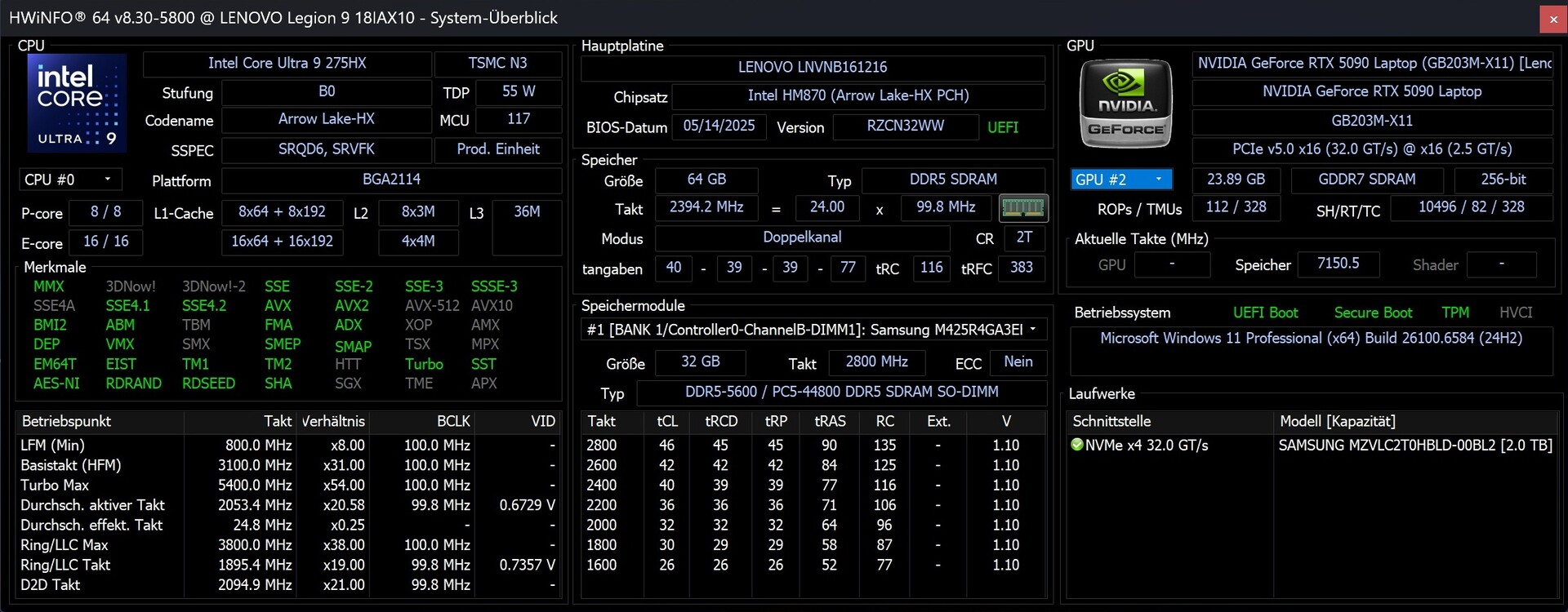 | Lenovo Legion 9 18IAX10 (Toshiba Exceria Pro SDXC 64 GB UHS-II) | |