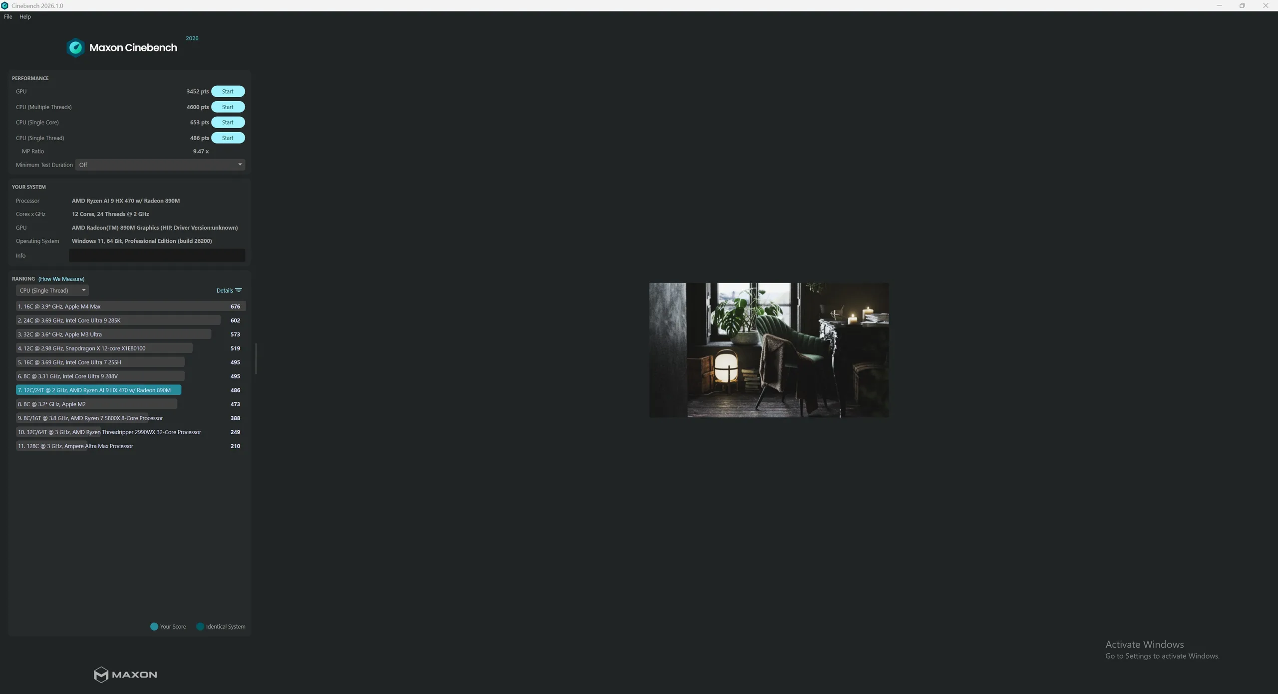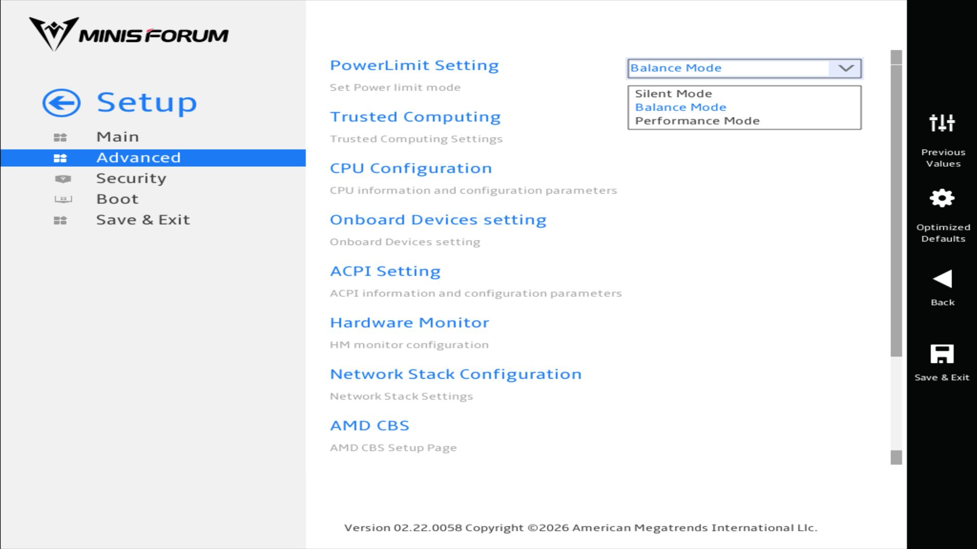 Tous les benchmarks ont été réalisés avec les paramètres d'usine. Le Minisforum permet d'ajuster le profil de performance de l'AMD Ryzen AI 9 HX 470 dans le BIOS, mais les tests ont été effectués dans les paramètres d'usine avec le réglage "Auto".