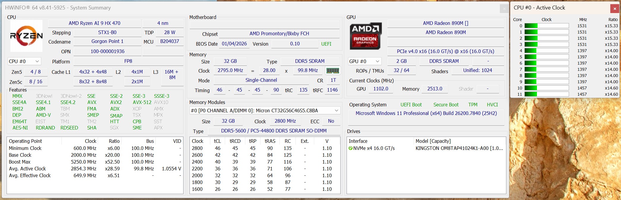| Minisforum AI X1 Pro, HX 470 (v6.92.6600) | |