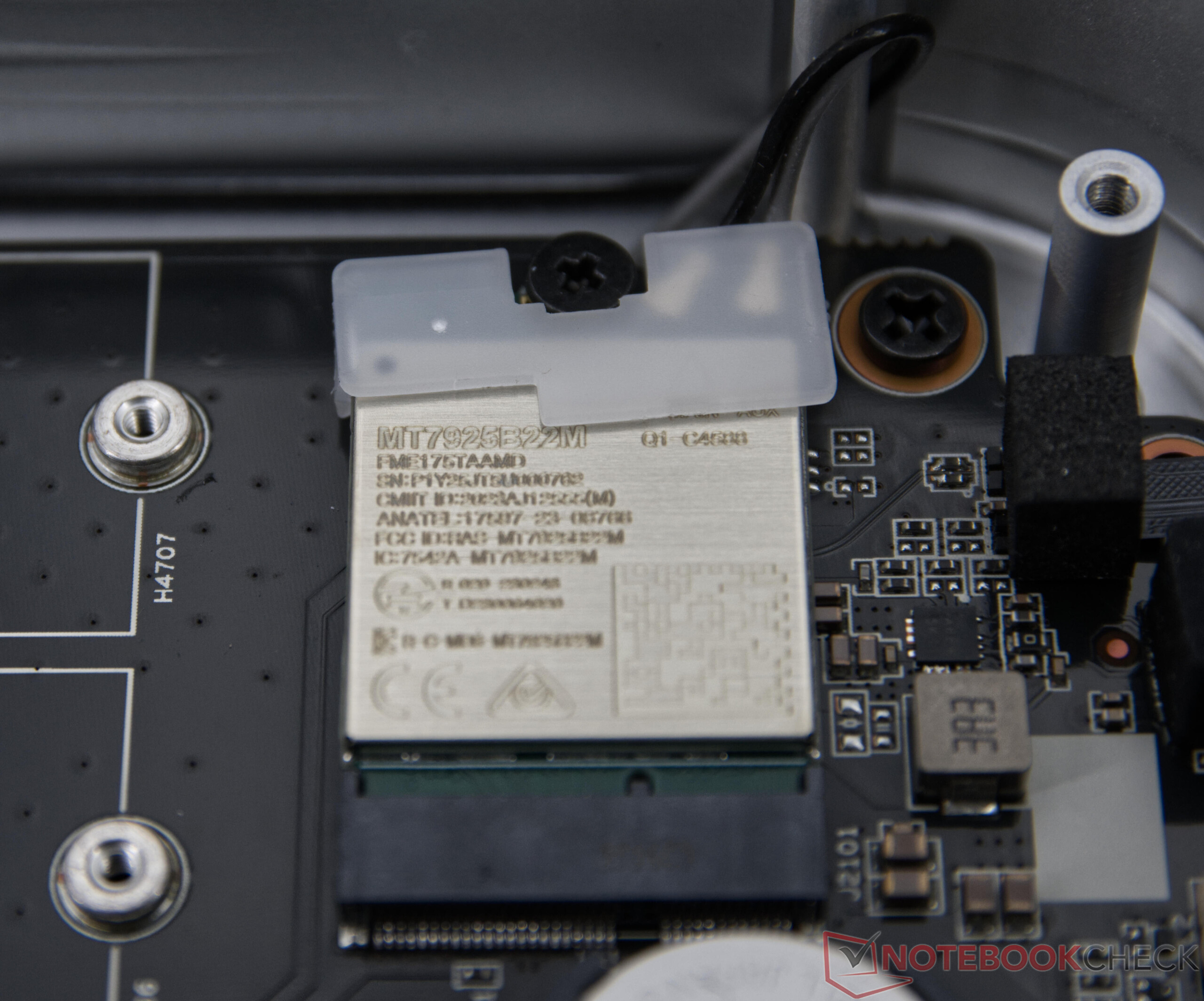 L'entretien du Minisforum AI X1 Pro-HX470 est relativement simple : après avoir desserré quelques vis, le dessous peut être retiré. Pour accéder à la RAM et au SSD, il faut toutefois retirer le bloc d'alimentation et l'unité de haut-parleurs - attention aux câbles courts. La RAM, le module WLAN et le SSD peuvent être remplacés ou étendus.