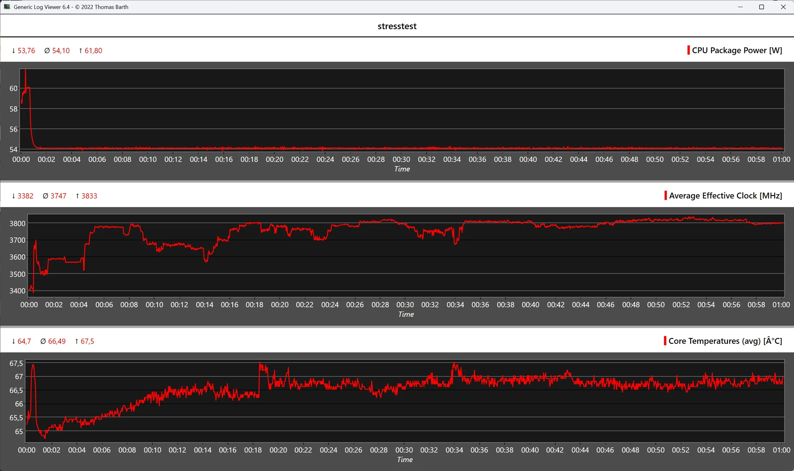 D'un point de vue thermique, le Minisforum AI X1 Pro est en excellente condition. Même en cas de charge maximale prolongée, le boîtier chauffe à moins de 40 °C, tandis que le SoC reste clairement dans la plage non critique avec un maximum de 67,5 °C.