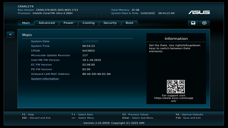 Tous les benchmarks ont été réalisés avec les paramètres d'usine. Les performances du SoC sont restées inchangées et correspondent aux réglages d'usine du BIOS en mode équilibré. Les très nombreuses options du BIOS sont un point positif. Par rapport aux mini PC de Geekom, Minisforum ou Acemagic, Asus offre ici beaucoup plus d'options d'intervention - y compris la désactivation ciblée de ports USB individuels.