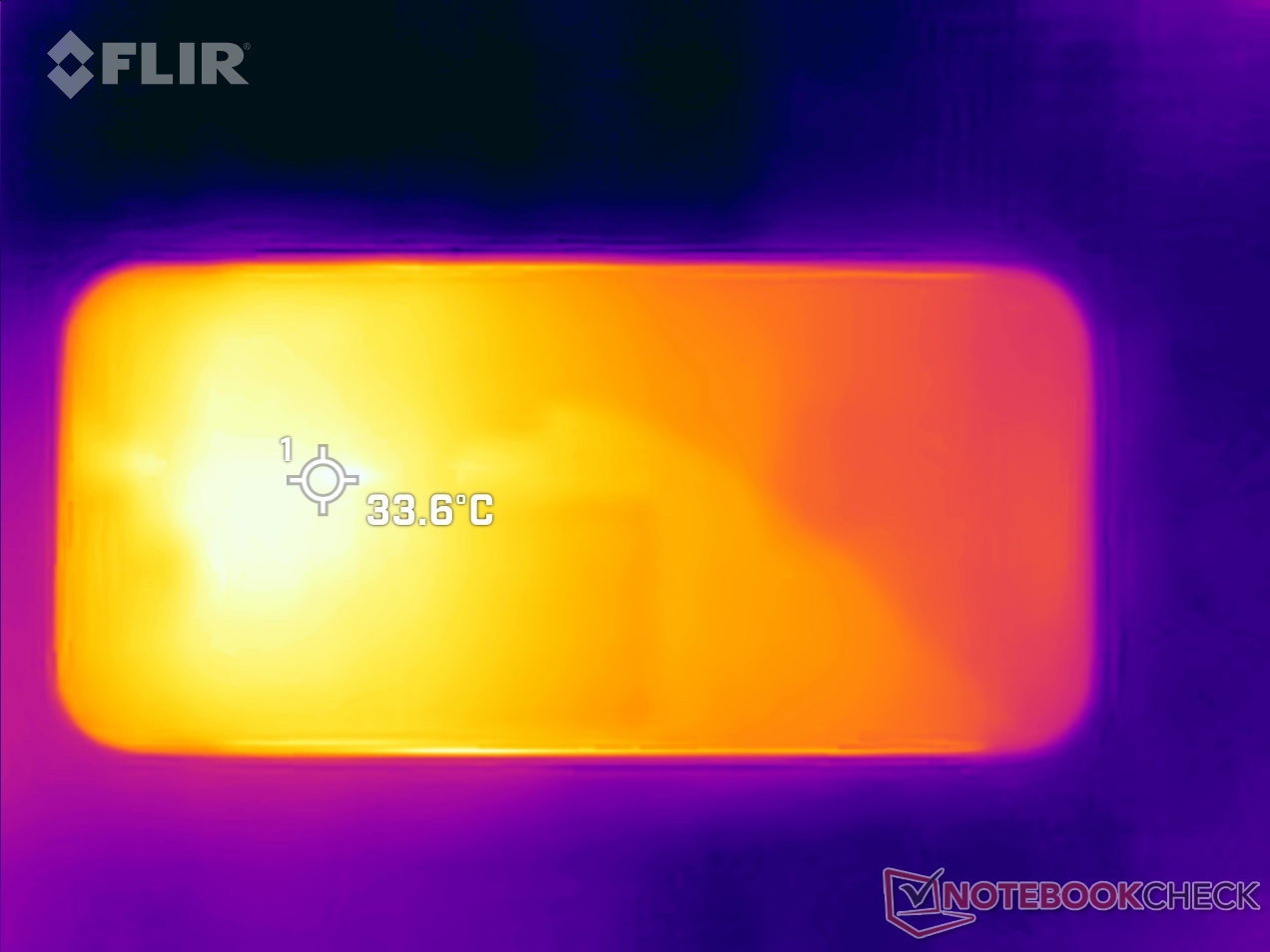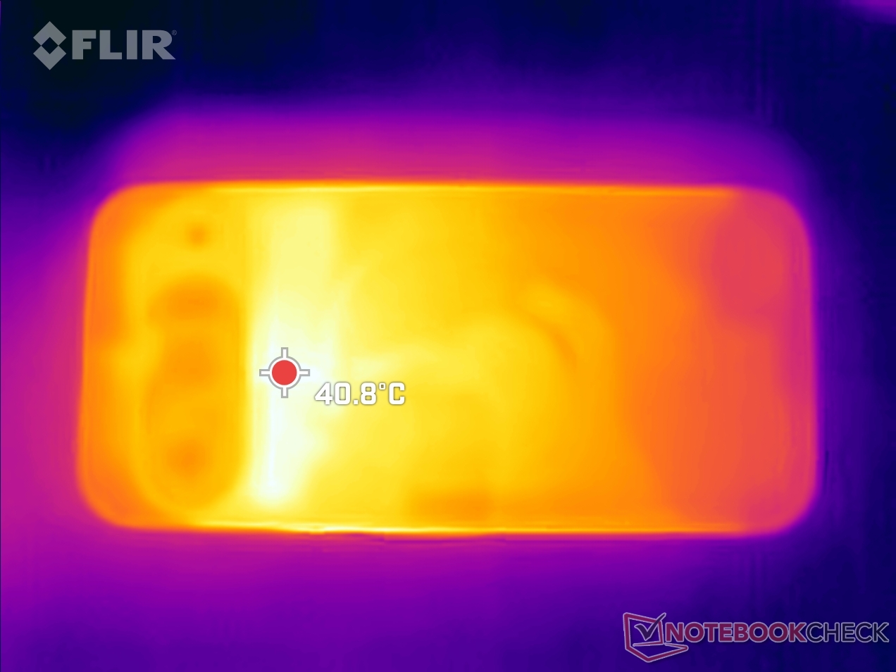 (±) La température maximale du côté supérieur est de 40.6 °C / 105 F, par rapport à la moyenne de 35.2 °C / 95 F, allant de 21.9 à 247 °C pour la classe Smartphone.