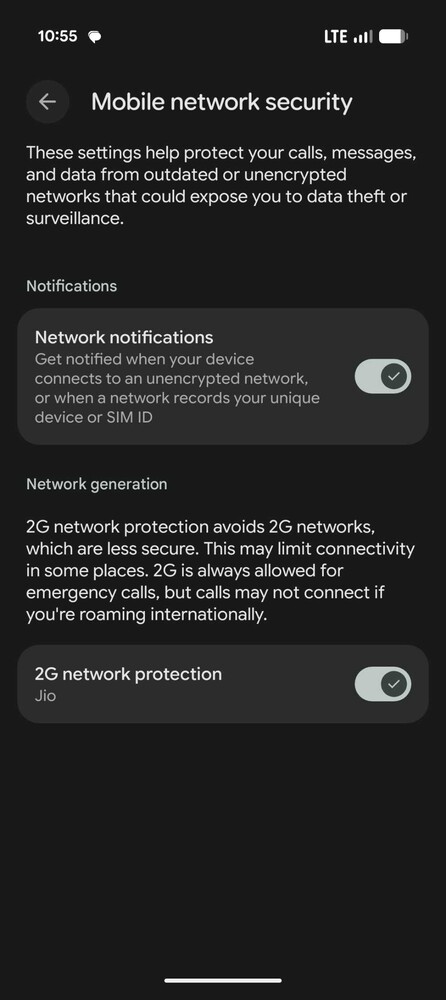Les modèles américains du Pixel 10 (GLBW0) sont uniquement eSIM mais prennent en charge la 5G mmWave sur les bandes 258, 260 et 261, ainsi que la Sub-6 GHz. La variante indienne (GK2MP) ne prend en charge que les fréquences 5G Sub-6 GHz mais comprend un plateau SIM amovible (nano-SIM et eSIM).