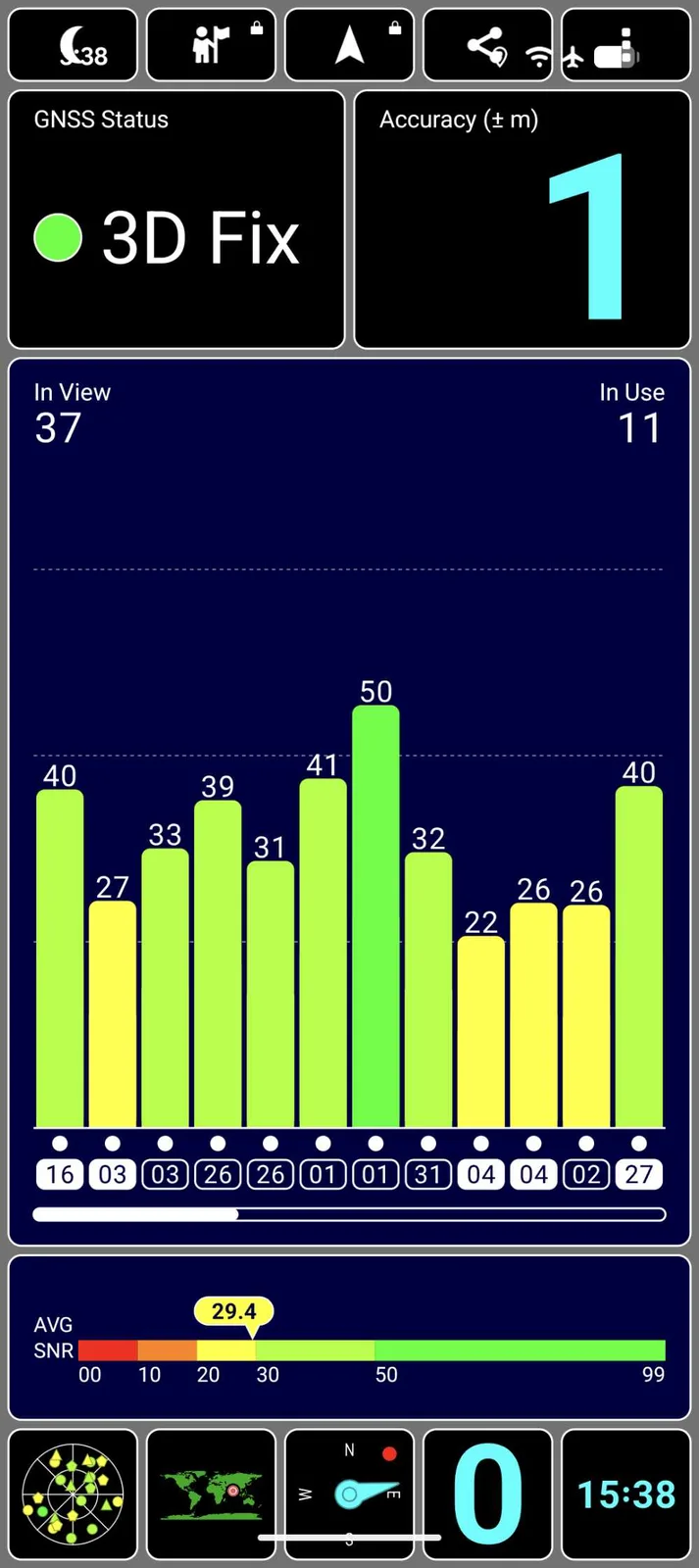 Les systèmes de renforcement par satellite (SBAS) EGNOS et GAGAN ne semblent pas être pris en charge.