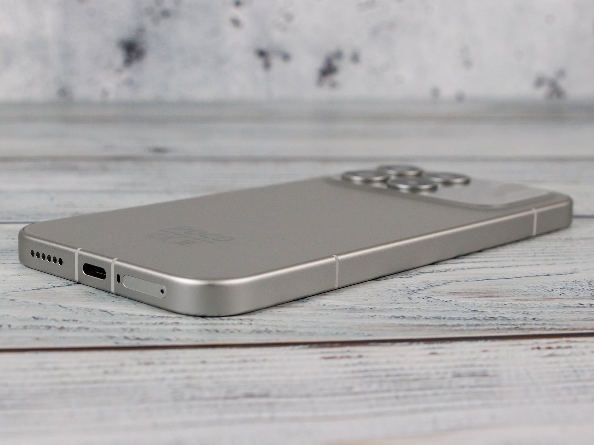 Le Poco F8 Pro est disponible en noir, bleu et argent titane. La hauteur a été réduite à 8 mm malgré la batterie plus grande - nous avons mesuré 8,25 mm, et jusqu'à 10,8 mm avec les appareils photo.