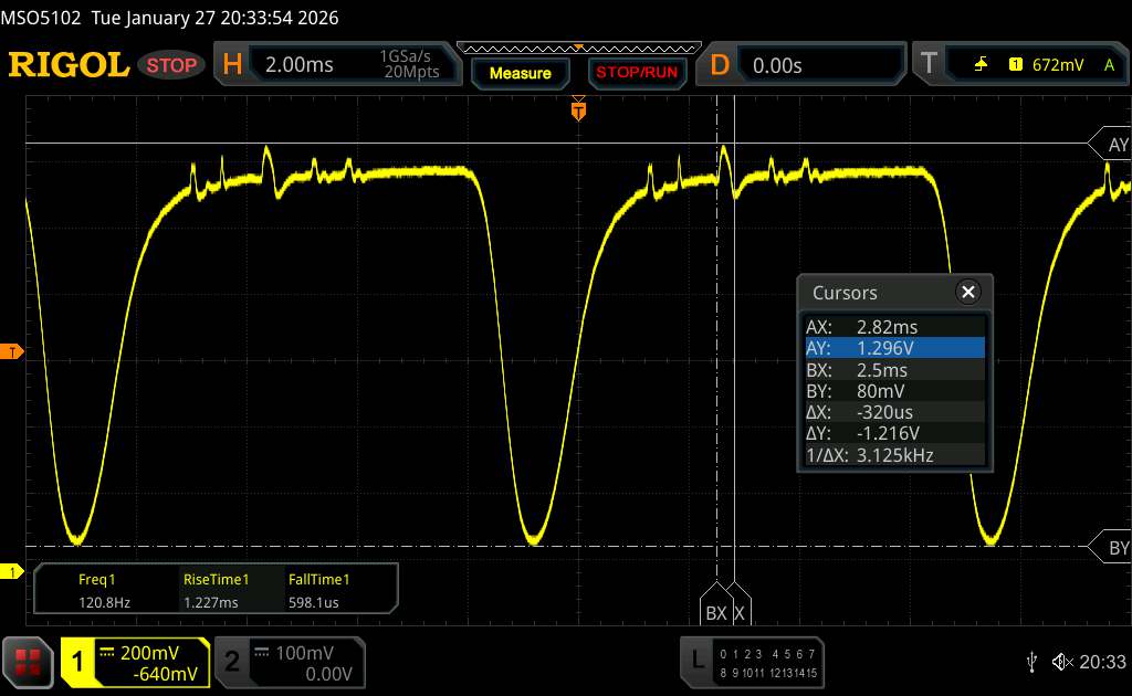 | Scintillement / MLI (Modulation de largeur d'impulsion) décelé | 120 Hz Amplitude: 13.7 % Secondary Frequency: 3125 Hz | ||