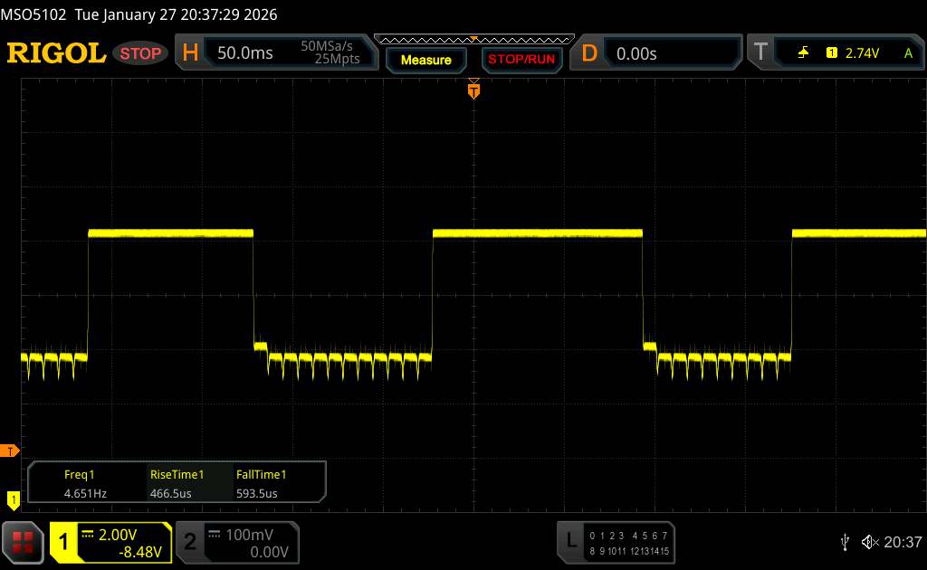 Le rétroéclairage de l'écran scintille à la fréquence de 120 Hz (certainement du fait de l'utilisation d'une MDI - Modulation de largeur d'impulsion) . La fréquence de rafraîchissement de 120 Hz est extrêmement faible, de grands risques de fatigue oculaire accrue et de maux de tête en cas d'utilisation prolongée. En comparaison, 53 % des appareils testés n'emploient pas MDI pour assombrir leur écran. Nous avons relevé une moyenne à 7996 (minimum : 5 - maximum : 343500) Hz dans le cas où une MDI était active. | |||