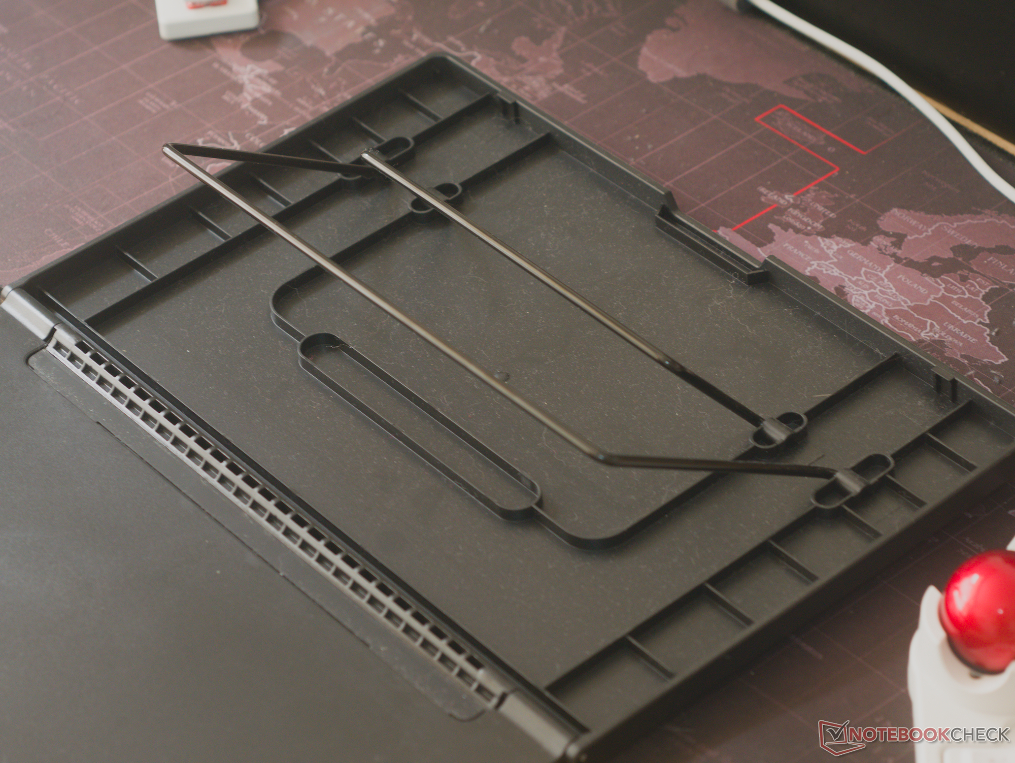 Connecter le Kamvas 16 Gen 3 à mon ordinateur portable et installer le support s'est fait sans difficulté, même en utilisant le câble 3-en-1. Le support lui-même offre un soutien décent, mais si vous appuyez fort avec le stylet dans les coins supérieurs de l'écran, il y a un peu d'instabilité. Il serait bon d'avoir un support intégré ou un support plus large.
