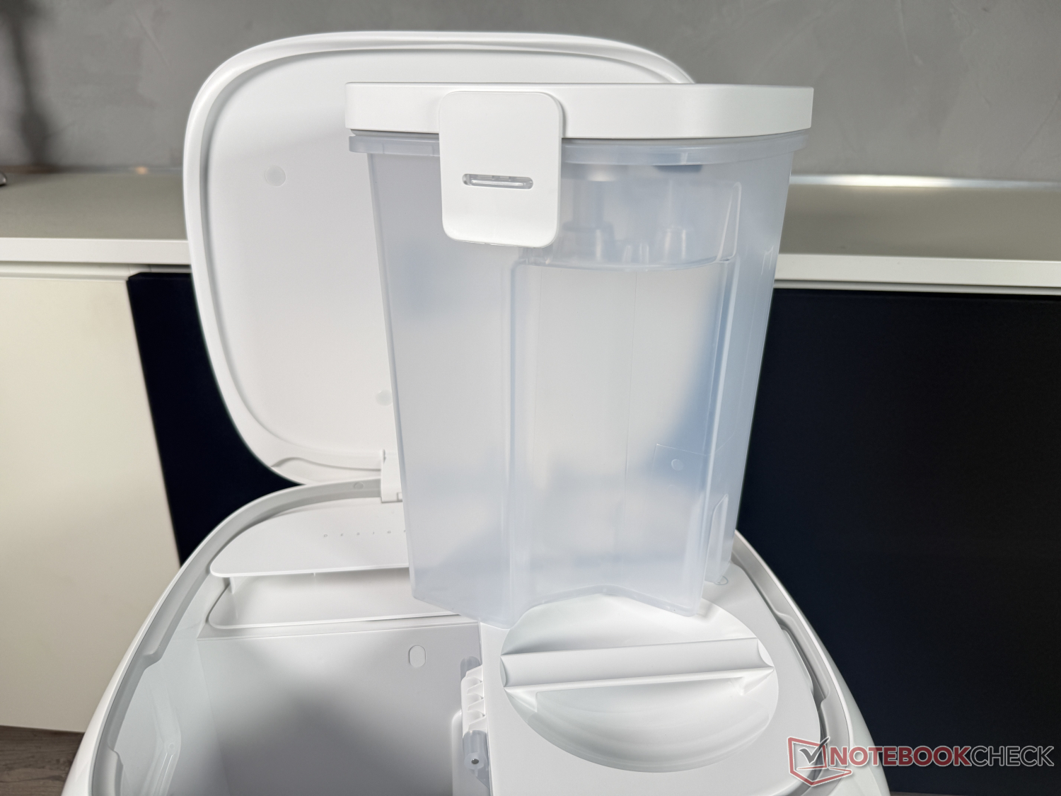 Le retraitement dans la station a fonctionné de manière fiable, de sorte que la serpillière en forme de rouleau était toujours belle et propre. Outre l'absence d'autonettoyage dans la station, un aspect négatif du test était que la station de nettoyage était assez bruyante à environ 45 dB (mesuré à 1 m de distance) lorsque la serpillière était en train de sécher. Le Roborock Qrevo Curv 2 Flow est beaucoup plus audible et donc plus perceptible sur quelques heures que certains de ses concurrents. Il faut en tenir compte si la station doit être placée directement dans l'environnement de vie.