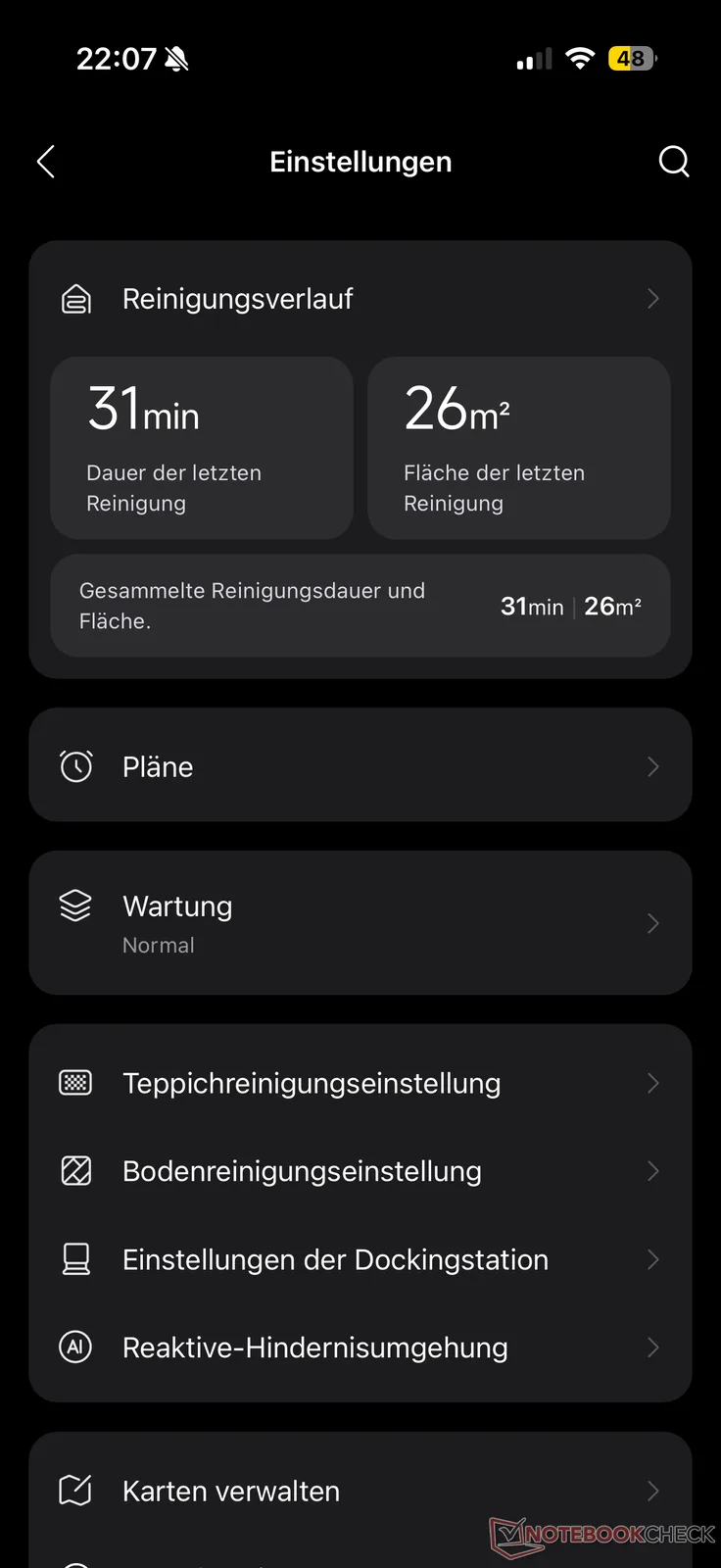 De nombreuses options sont disponibles dans les réglages, y compris l'ajustement individuel du comportement de nettoyage et de la procédure de la station de nettoyage. Comme on peut s'y attendre de la part de Roborock, il y a aussi une fonction vidéo en direct (après activation) ainsi que son propre assistant vocal Rocky pour le contrôle par commande vocale. Il a principalement écouté ce qui était dit, mais s'est parfois senti interpellé par des conversations pendant la période de test, bien que personne n'ait mentionné le mot d'activation "Hello Rocky".