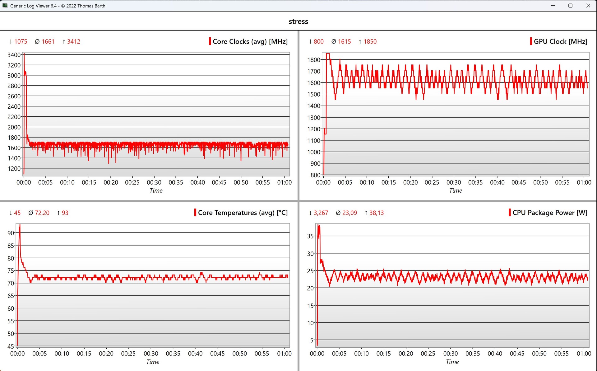 Le nouveau modèle est nettement plus économe que son prédécesseur, surtout en mode veille, et nous avons mesuré un maximum de 5,4 watts. Nous avons mesuré un maximum de 63 watts lors du test de stress, qui se stabilise rapidement à ~45 watts.
