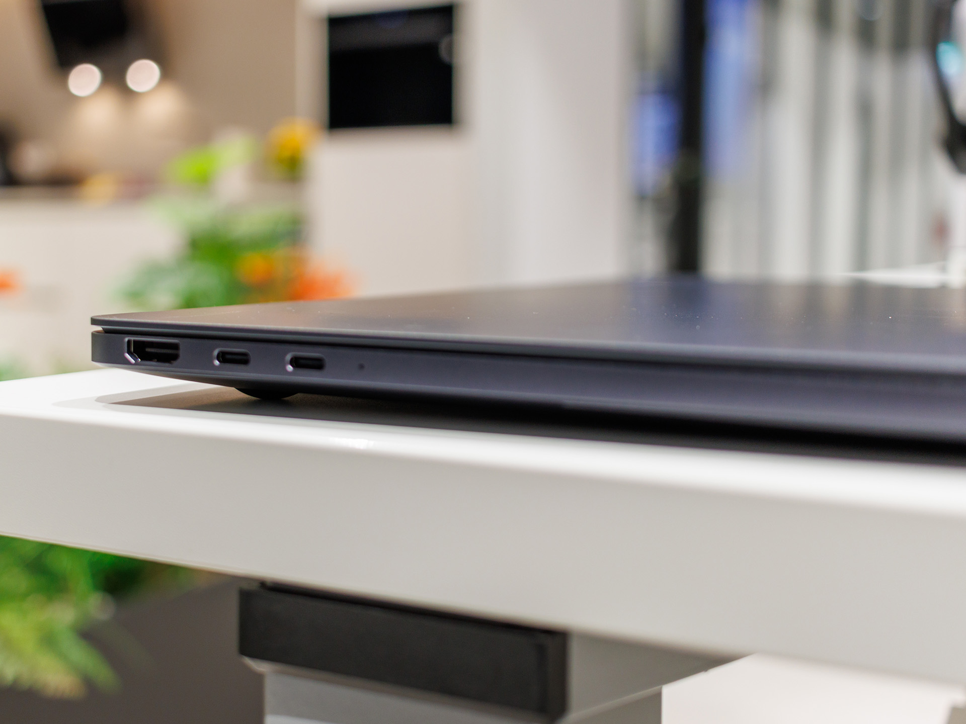 L'ordinateur Panther Lake Core Ultra 7 355 et Core Ultra 5 325 sont disponibles en tant que processeurs. La batterie a une capacité de 61,2 Wh. Les acheteurs devront se passer de Thunderbolt 4 ; à la place, il y a des connexions classiques avec USB-C, USB-A, LAN et HDMI, complétées par un emplacement microSD, qui, cependant, ne prend pas en charge microSD Express non plus.