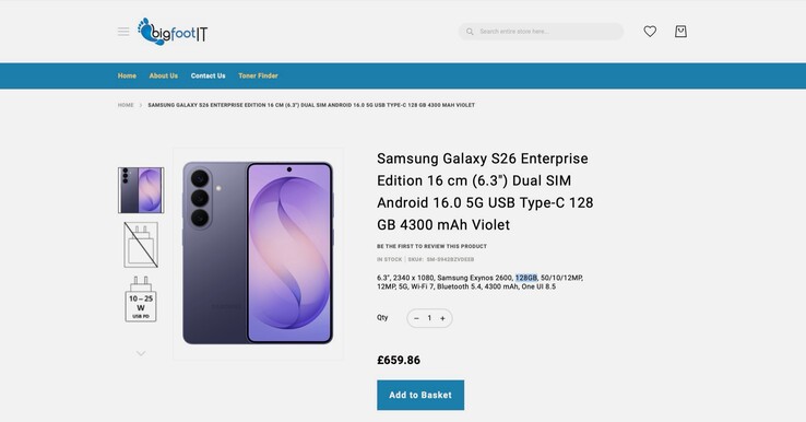 Le Samsung Galaxy S26(850 $ sur Amazon) n'était auparavant disponible qu'avec un espace de stockage de 256 ou 512 Go. Samsung a maintenant commencé à livrer un nouveau modèle de base de 128 Go, mais cette version n'est disponible qu'en tant qu'édition Entreprise pour les clients professionnels. Le détaillant britannique Bigfoot IT propose ce modèle de 128 Go au prix de £659 ($869), tandis que l'édition Enterprise avec 256 Go coûte £899 ($1,180).