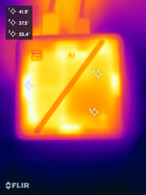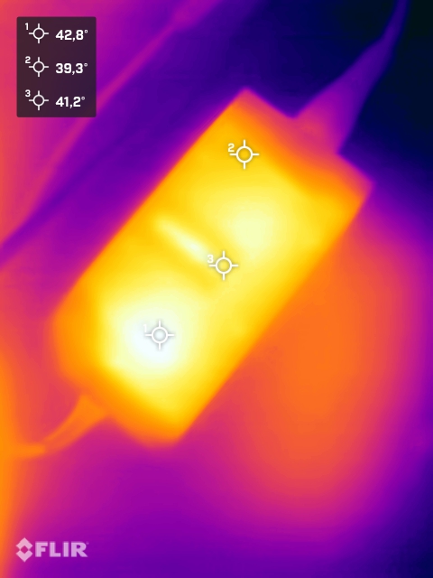 (±) En utilisation inactive, la température moyenne du côté supérieur est de 32.7 °C / 91 F, par rapport à la moyenne du dispositif de 32.5 °C / 91 F.