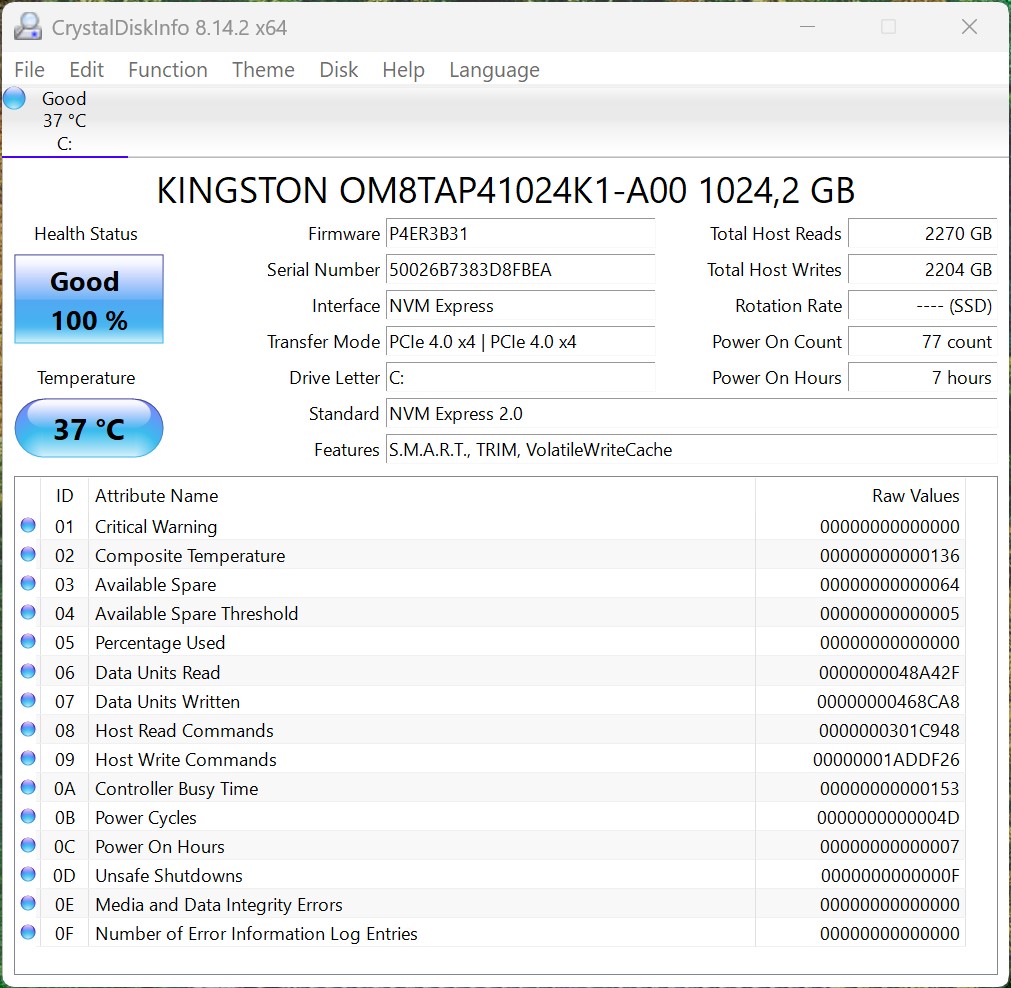 Le Sapphire Edge AI est généralement vendu sans mémoire de masse, le choix du support de stockage est donc laissé à l'appréciation de l'acheteur. L'appareil de test qui nous a été fourni est équipé d'un SSD de Kingston, qui offre de solides performances au quotidien. Il convient de souligner la stabilité des performances sous charge, assurée par le refroidissement passif situé sur le dessus du boîtier. L'appareil lui-même offre de la place pour deux périphériques de stockage de masse.