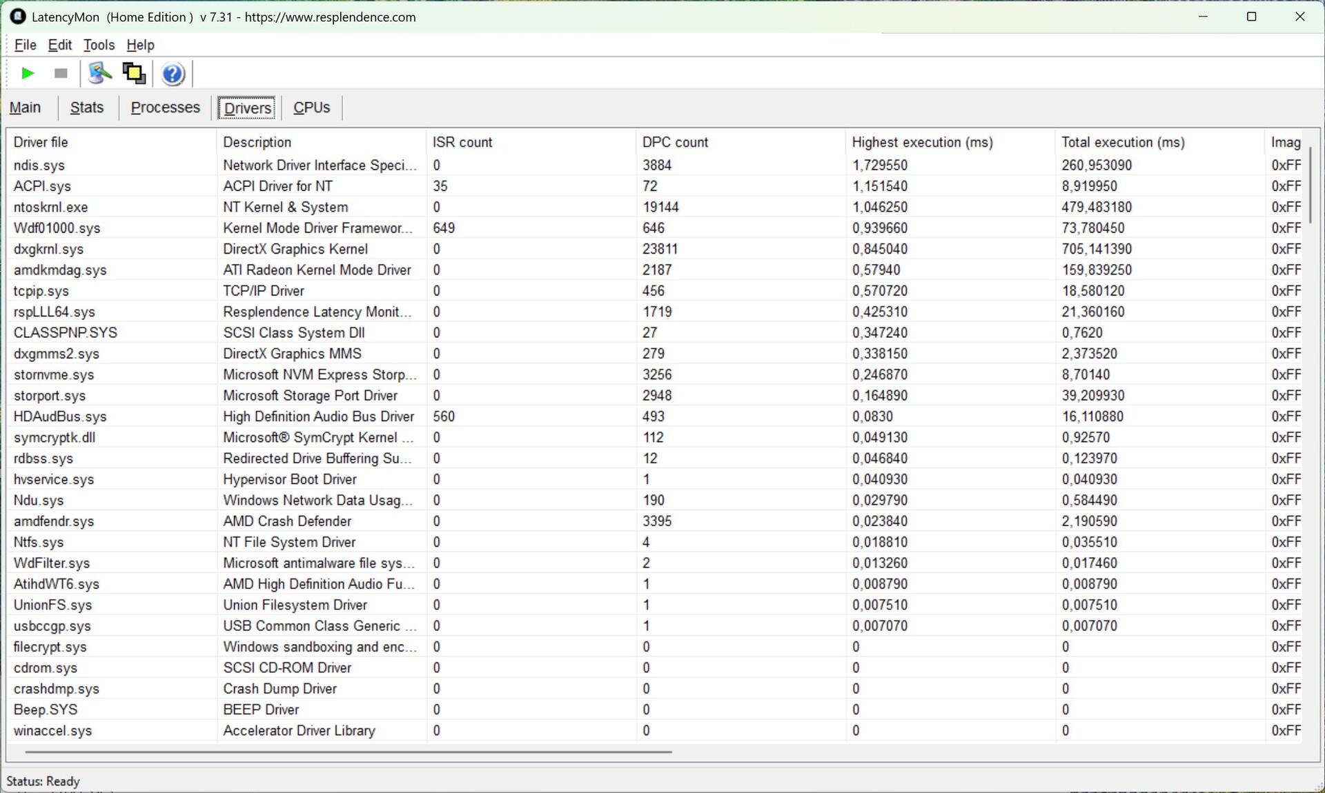 | DPC Latencies / LatencyMon - interrupt to process latency (max), Web, Youtube, Prime95 | |