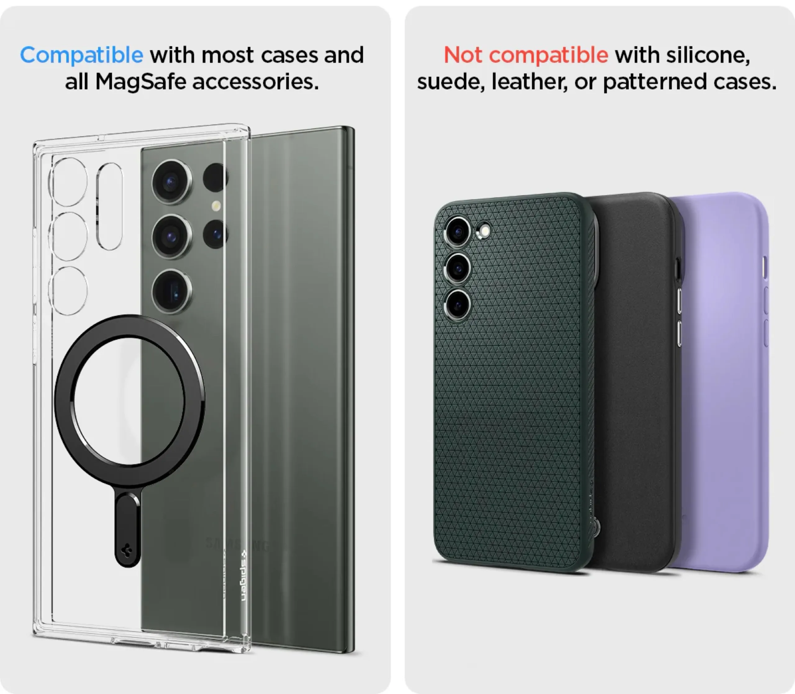 Saisissant cette opportunité, Spigen a lancé une collection d'accessoires magnétiques pour le téléphone phare, y compris un adaptateur qui ajoute une capacité magnétique aux étuis conventionnels. La gamme comprend également des étuis de protection avec anneaux magnétiques intégrés, dont une option transparente élégante avec une dragonne et trois étuis différents équipés d'une béquille intégrée