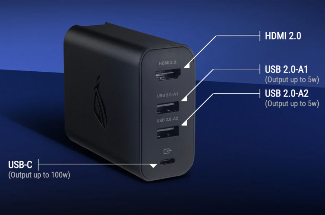 En bref, le nouveau modèle de 100 W s'appuie sur son prédécesseur de 65 W dans deux domaines. Comme son nom l'indique, le ROG 100W Gaming Charger Dock peut recharger un appareil jusqu'à 100 W via l'USB Type-C à 20V/5A ou la charge rapide PPS (Programmable Power Supply). Au passage, Asus ne mentionne pas la prise en charge PPS pour l'ancienne station d'accueil ROG Gamign Charger Dock.