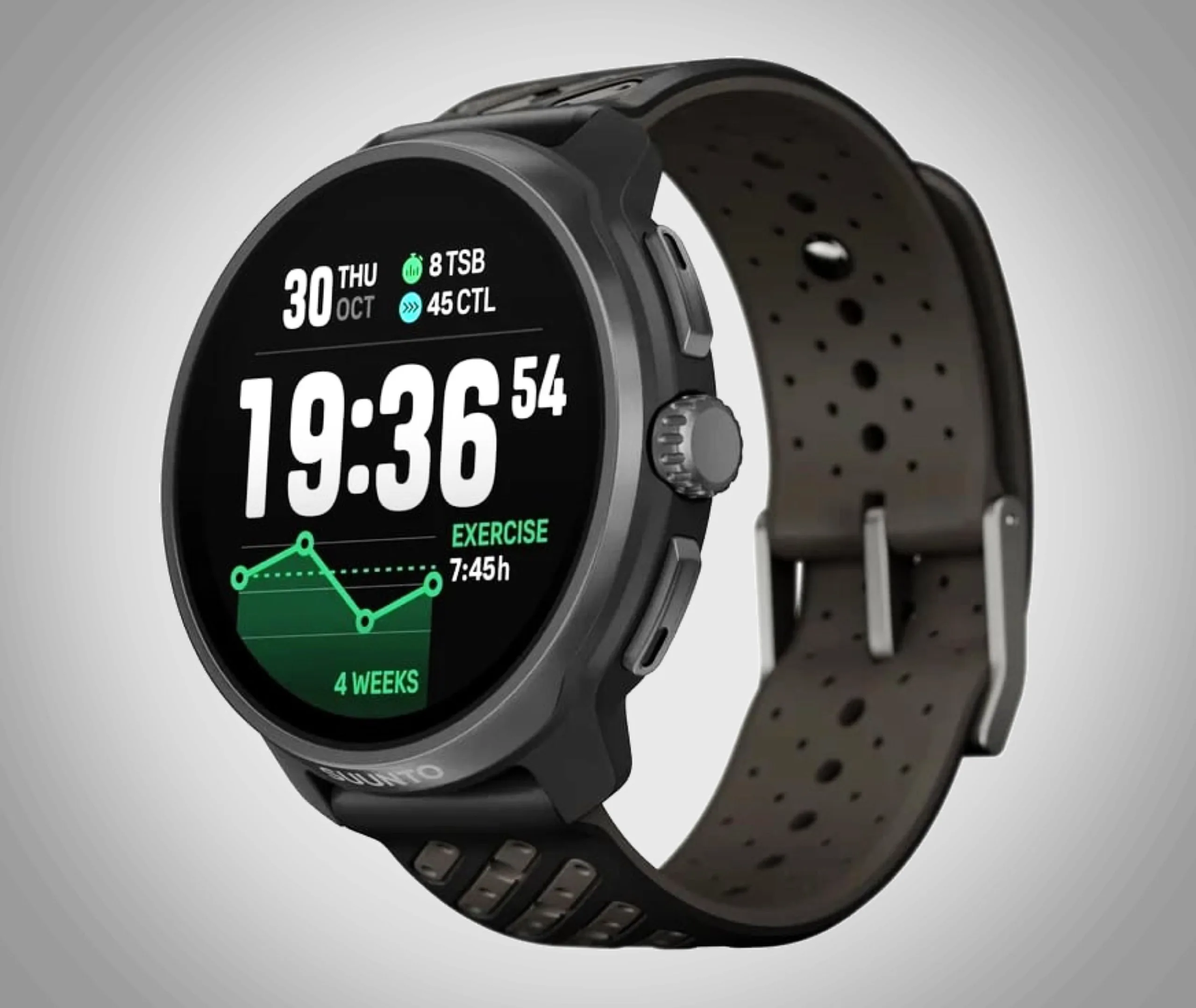 Suunto continue d'installer un écran AMOLED rond. Le GPS multibande est destiné à enregistrer la distance parcourue pendant la course avec un haut degré de précision. La smartwatch est censée atteindre une autonomie de 50 heures avec une utilisation continue du module GPS. En mode smartwatch normal, Suunto annonce une autonomie de douze jours, soit quatre jours de moins que le modèle précédent. Cette autonomie plus courte est probablement due au processeur Ambiq Apollo 510 plus puissant.