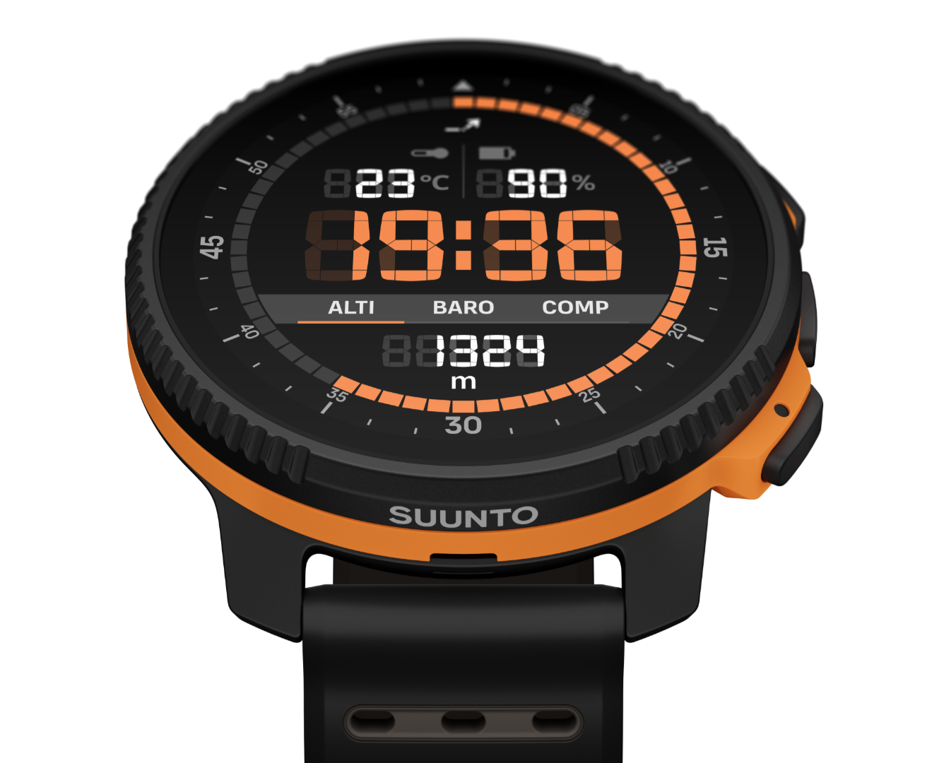 D'ailleurs, cette nouvelle version de la Vertical 2 n'est proposée qu'en finition titane. Conçue pour commémorer le 90e anniversaire de Suunto, la Vertical 2 Titanium s'inspirerait également de la montre d'alpinisme classique de la société, Vector. Cet hommage va jusqu'au cadran exclusif de la Vertical 2 Titanium, qui complète les éléments orange de son boîtier.