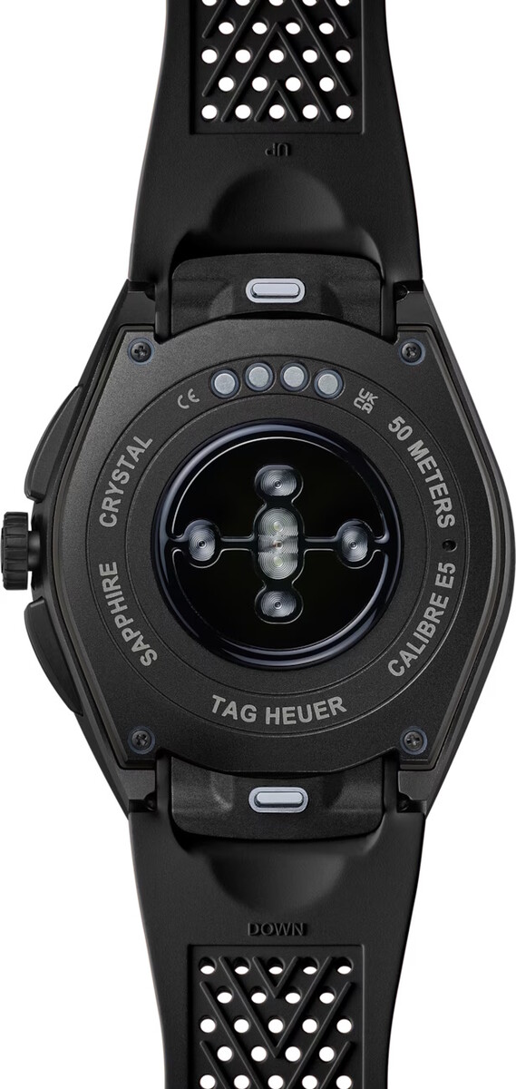 À la base, il s'agit d'une smartwatch relativement classique, équipée de capteurs optiques pour mesurer la fréquence cardiaque et la saturation en oxygène du sang, entre autres. La surveillance du sommeil, une caractéristique standard des wearables modernes, sera ajoutée ultérieurement. Parmi les autres caractéristiques figurent un altimètre, un module GNSS, un microphone et un haut-parleur. Le modèle de 45 mm est équipé d'un écran de 1,39 pouce d'une résolution de 454 x 454, basé sur la technologie OLED, avec des pixels auto-éclairants. Tag Heuer installe le SoC Qualcomm Snapdragon Wear 5100+, un processeur déjà un peu dépassé. Vous trouverez plus de détails sur ici