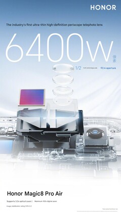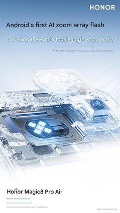 Plusieurs nouveaux teasers ont confirmé les spécifications de l'appareil photo qui avaient déjà fait l'objet de fuites, comme le capteur de 50 mégapixels de l'appareil photo principal, assez grand (1/1,3 pouce) et doté d'une ouverture de f/1,6. Il en va de même pour le téléobjectif à périscope 3,2x, qui, selon Honor, est le plus fin de l'industrie et est doté d'un capteur de 64 Mpx de 1/2 pouce et d'une ouverture f/2,6. Un flash AI zoom est également annoncé, conçu pour couvrir toutes les longueurs focales du portrait et atteindre jusqu'à 200 lux ou 50 lux à une distance de 2 mètres ou 6,6 pieds.
