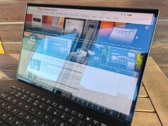 Acer utilise un écran tactile OLED de 14,5 pouces (2 880 x 1 800 pixels, 16:10) à 120 Hz de Samsung. Les points forts de l'OLED (couleurs vives, contrastes élevés, temps de réponse rapide) sont présents, mais la couche de l'écran tactile produit un effet de trame clairement visible, qui nuit grandement à la qualité subjective de l'image, en particulier avec des contenus lumineux. Nous avons essayé de capturer cet effet sur la photo de droite, mais l'appareil photo n'exacerbe que très peu le problème. Il y a également un scintillement PWM à 240 Hz à chaque niveau de luminosité. La luminosité et la température des couleurs peuvent être contrôlées par un capteur. L'écran tactile est très réfléchissant, ce qui limite son utilisation, surtout en extérieur.
