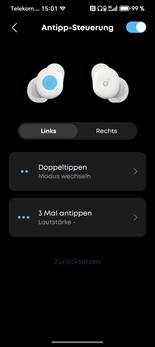 Les écouteurs se commandent principalement via l'application, car les surfaces tactiles sont délibérément petites et moins sensibles pour éviter les saisies accidentelles pendant le sommeil. C'est une bonne idée, mais il faut un peu de temps pour s'y habituer. Au quotidien, les commandes telles que lecture/pause fonctionnent de manière fiable, et le passage entre les modes ANC et sommeil se fait également sans problème.