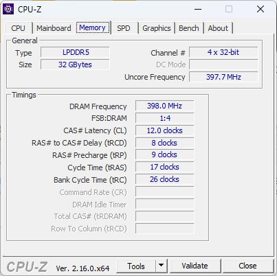 , 4x 8 GB Samsung LPDDR5-SDRAM