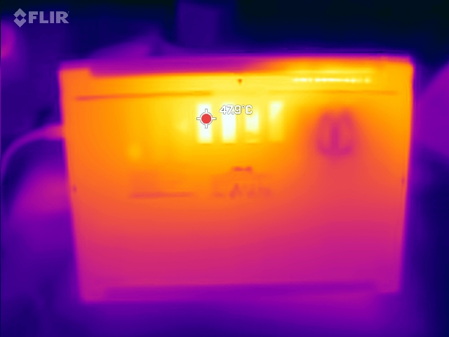 Les charnières à 180 degrés offrent un bon équilibre entre la robustesse et l'utilisation d'une seule main. Grâce à la construction métallique, le couvercle et la base sont stables, avec un seul point faible : près du port USB gauche. Il suffit d'une légère torsion pour que le dessous de l'appareil s'enfonce dans le port avec un grand bruit de craquement.