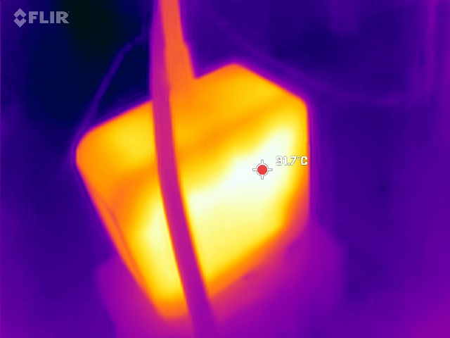 (-) Le fond chauffe jusqu'à un maximum de 47 °C / 117 F, contre une moyenne de 39.3 °C / 103 F