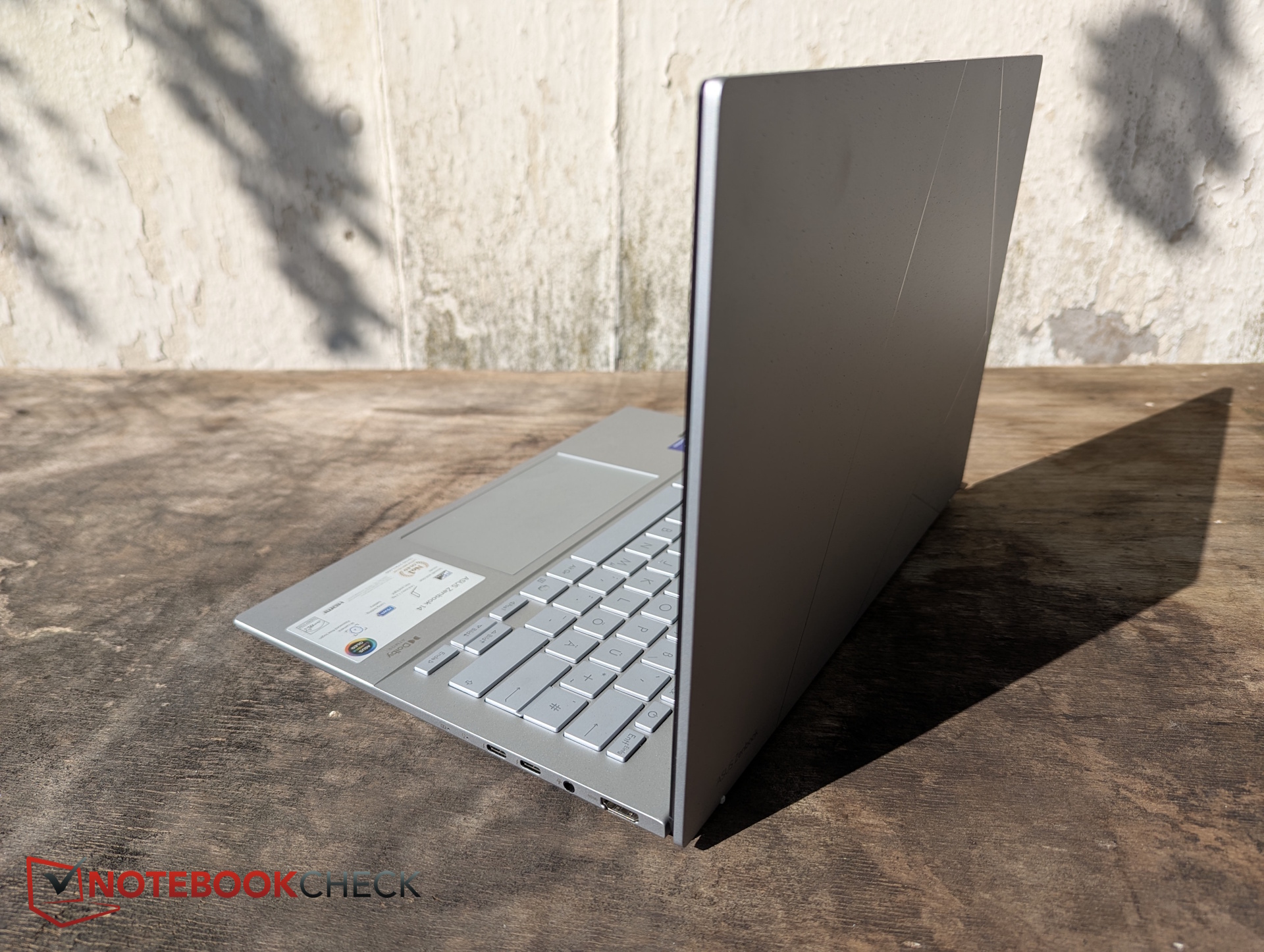 Comme nous avons déjà testé plus en détail le ZenBook 14 OLED d'AMD, presque identique, nous vous renvoyons à notre test du ZenBook 14 OLED UM3406K pour les sections concernant le boîtier, les ports et les périphériques d'entrée lors du test de la version Intel. Les différences éventuelles seront tout de même notées.