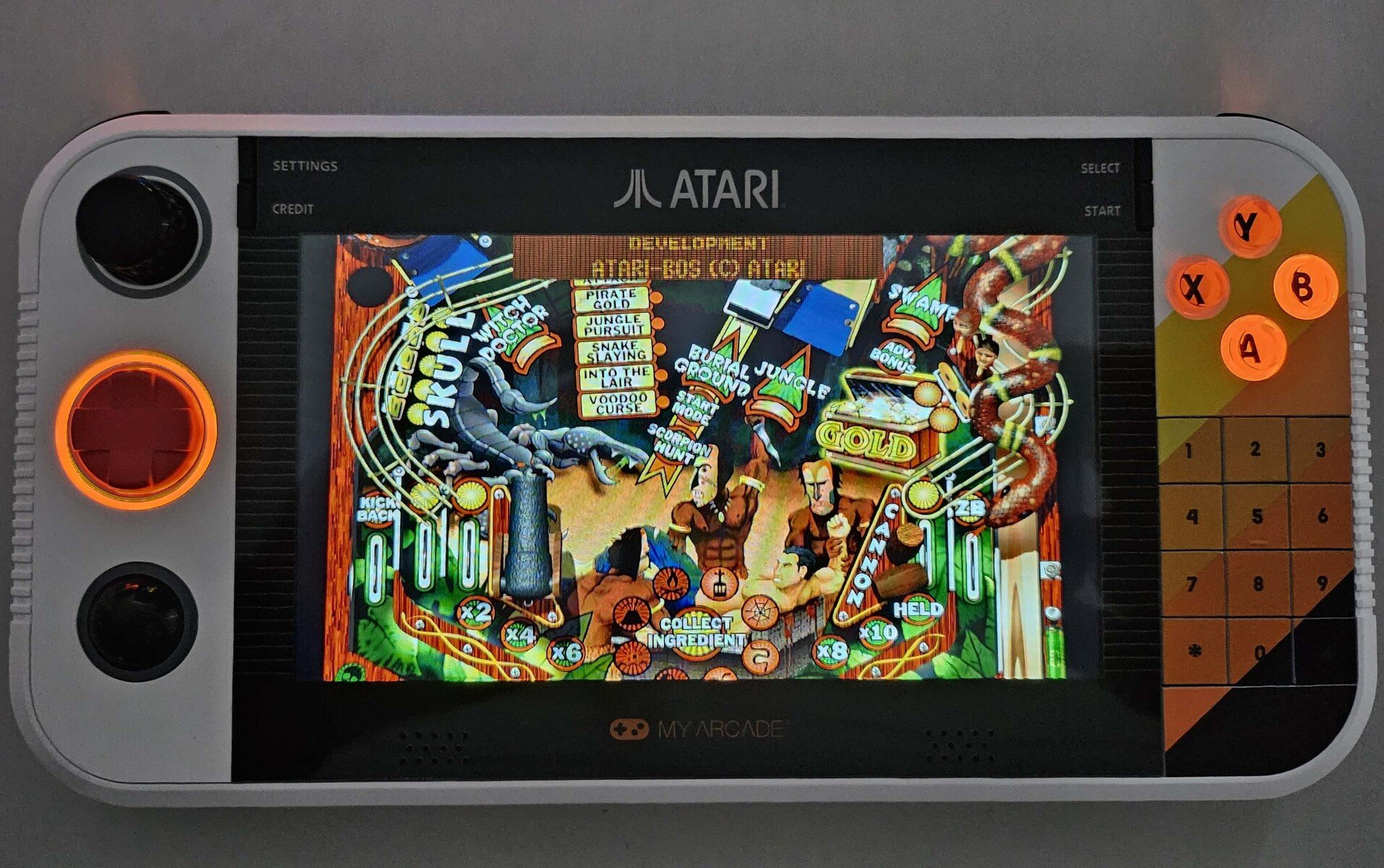 Chaque jeu offre plusieurs configurations de contrôle qui peuvent être visualisées et ajustées à tout moment pendant le jeu. Une fonction d'éclairage appelée SmartGlow, développée par Atari et My Arcade, met en évidence en couleur les commandes actives et requises pour le jeu sélectionné. L'écran de 7 pouces (environ 18 cm) est suffisamment grand pour les jeux rétro, bien que de nombreux titres plus anciens n'exploitent pas pleinement l'écran. Les réglages vous permettent de conserver le format d'origine ou d'étirer l'image pour qu'elle remplisse l'écran, bien que cette dernière option introduise naturellement une distorsion.