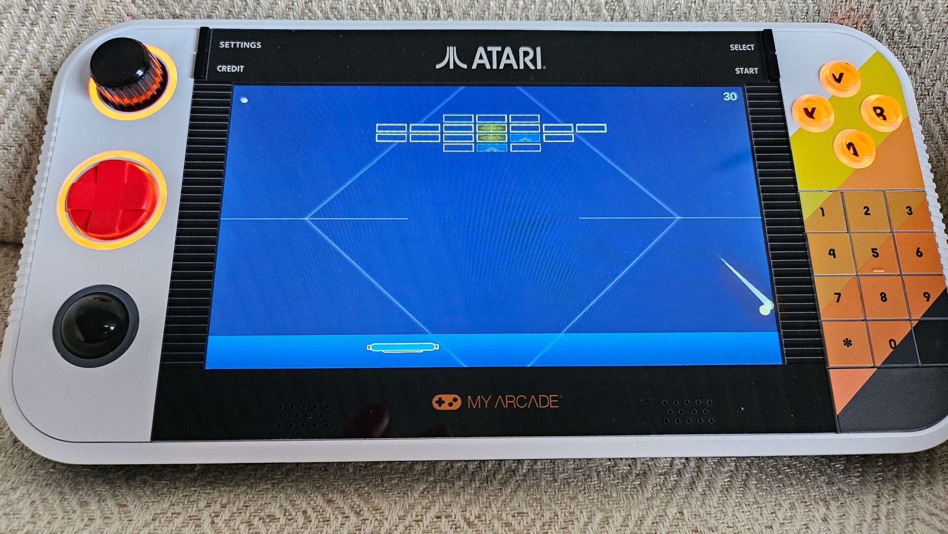 Après une semaine de tests pratiques, je suis partagé entre deux impressions sur l'Atari Gamestation Go. La gamme d'options de la manette est impressionnante, même s'il faut un peu de pratique pour s'y habituer. Jouer à Breakout avec le paddle est bien meilleur qu'avec n'importe quelle autre méthode d'entrée, et la Trak-Ball est remarquablement précise - en particulier lorsque la console est connectée à un téléviseur via HDMI, où elle fonctionne purement comme un contrôleur. Les menus sont bien organisés, même si je trouve personnellement des interfaces comme Retro Deck un peu plus attrayantes. Les 200 jeux intégrés offrent une grande variété.