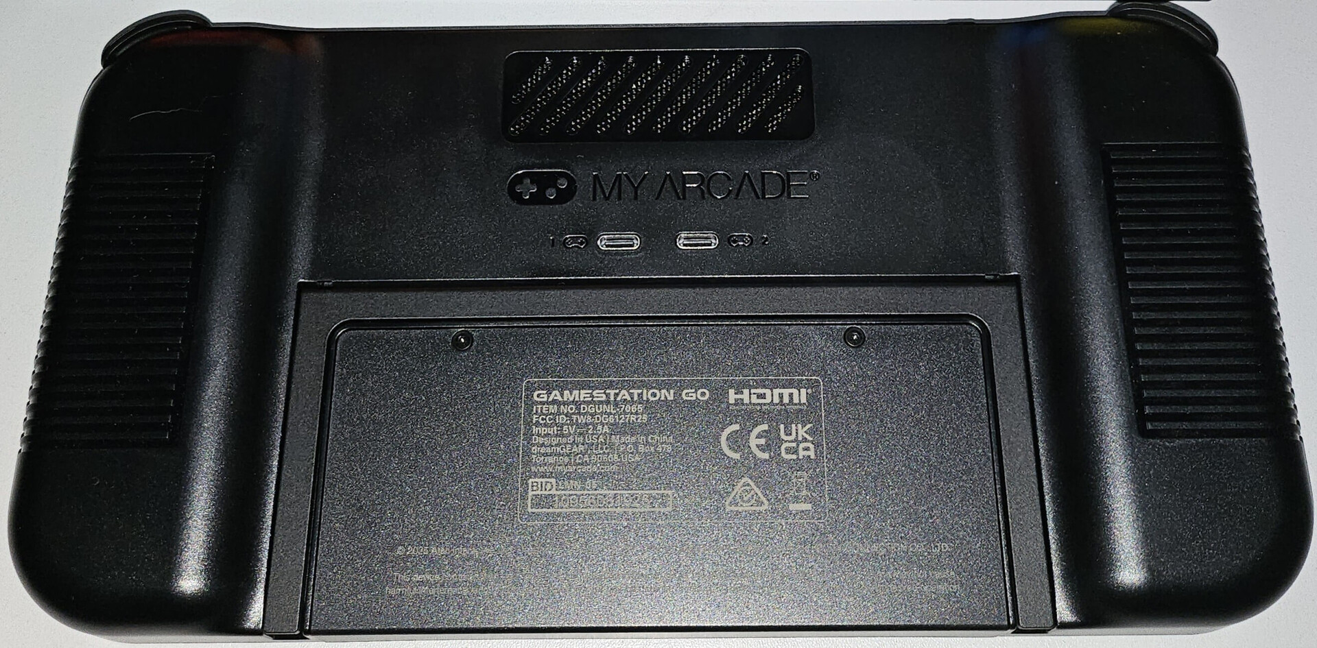 Deux ports USB-C pour les contrôleurs sont intégrés à l'arrière de la Gamestation Go (Source d'image : Marc Zander, Notebookcheck)