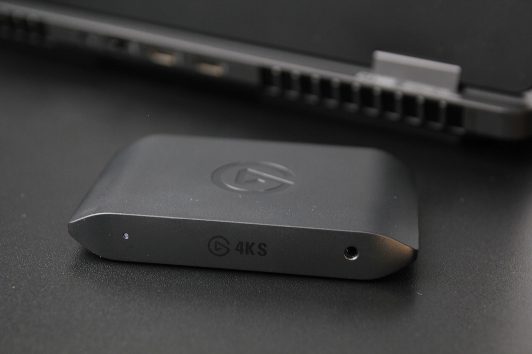 La 4K S est compacte et très légère, intégrée dans une coque en plastique noir. Les ports comprennent l'entrée HDMI, la sortie HDMI, l'USB-C (pour le PC d'enregistrement) et une prise audio de 3,5 mm pour l'ajout d'une source sonore séparée.