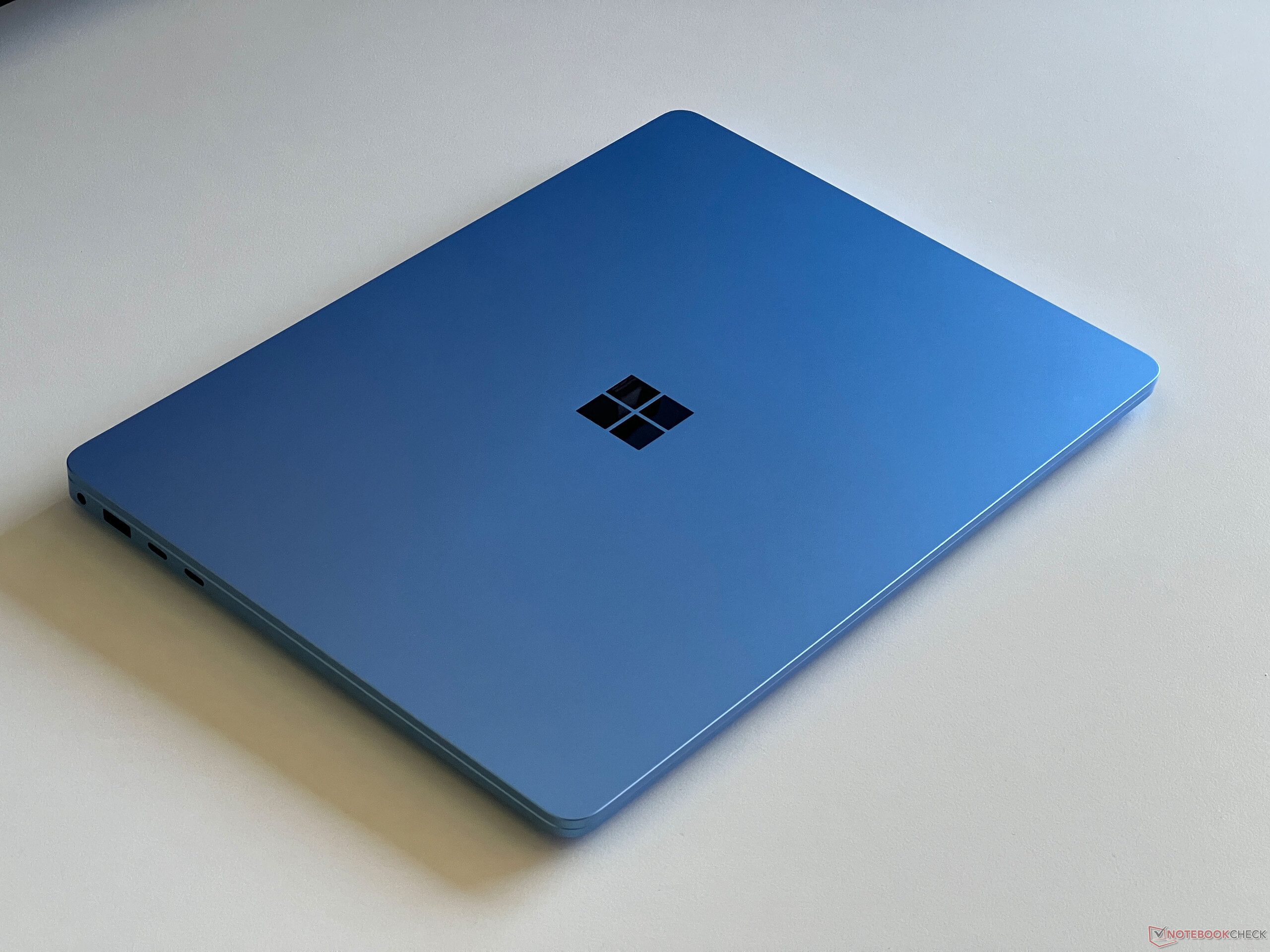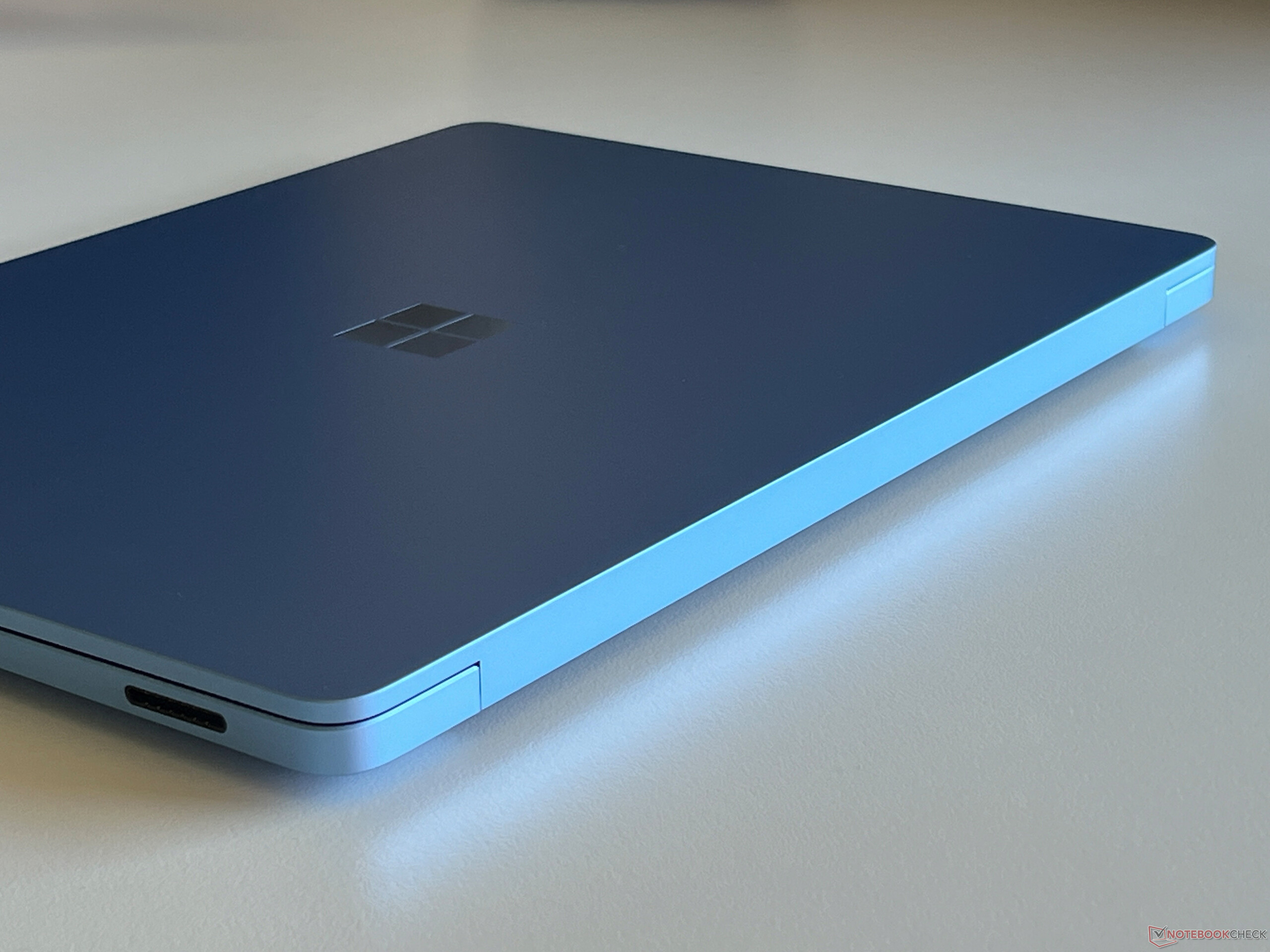 Rien n'a changé dans le design du Surface Laptop de 7ème génération et, extérieurement, vous ne pourrez pas dire que vous avez affaire à un nouveau modèle Snapdragon. Ce n'est qu'avec le nouveau bouton Copilot qu'on s'en aperçoit. Le boîtier métallique est toujours aussi bien construit et Microsoft propose l'ordinateur portable en noir, platine, gris-beige ou bleu saphir, qui est la couleur de notre appareil d'examen. En fonction de la luminosité, le modèle bleu saphir est très frappant et nous l'aimons bien. De plus, il n'y a pas de problème d'empreintes digitales.