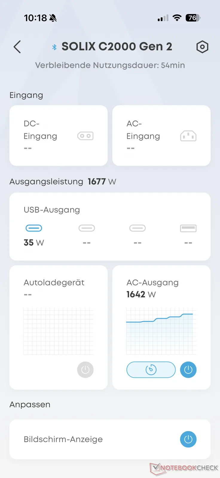L'Anker Solic C2000 Gen 2 peut être contrôlé non seulement via l'appareil, mais aussi via l'application Anker. Nous avons récemment décrit dans le test de l'appareil pratique Solix C1000 Gen 2 et du grand Solix F3000 plus en détail, c'est pourquoi nous voulons être plus brefs à ce stade.