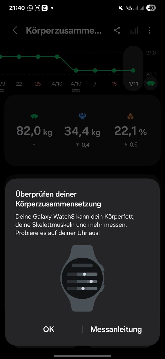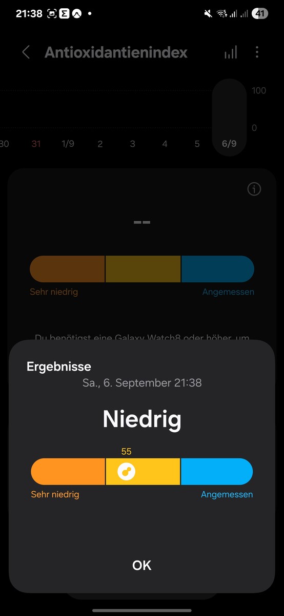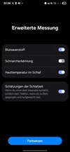 La pression artérielle peut également être mesurée avec la Galaxy Watch8 Classic, mais seulement après étalonnage avec un appareil externe. Dans ce cas, nous avons utilisé l'ExactFit 5 Connect de Braun comme référence. L'écart moyen sur trois mesures était de 0,29% pour la valeur systolique et de 3,65% pour la valeur diastolique, avec un écart maximum de 3 mmHg en un seul test.
