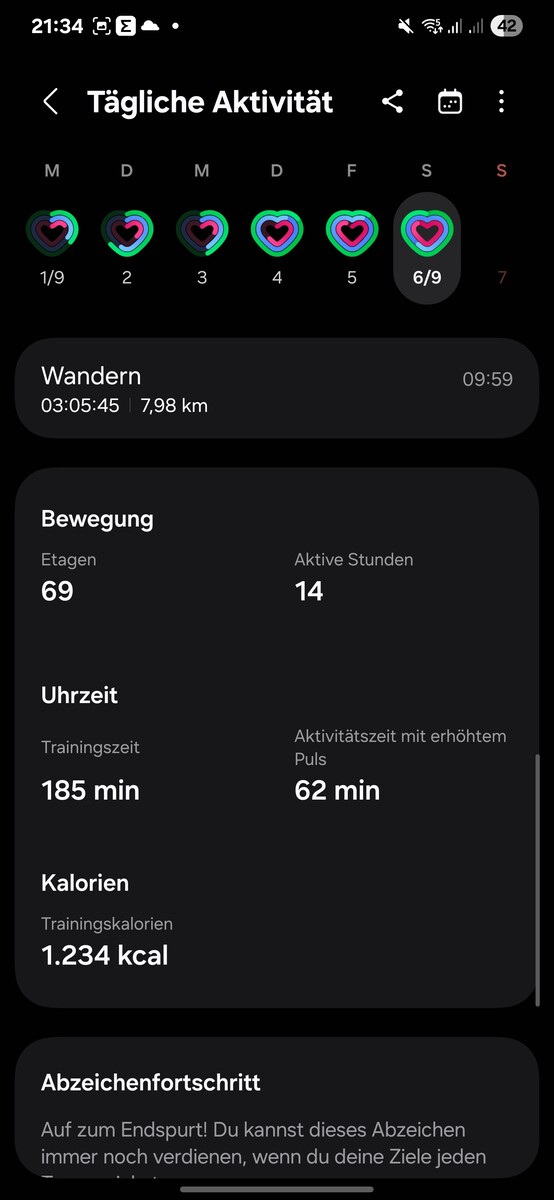 Objectifs d'activité - Samsung hearts sur la smartwatch