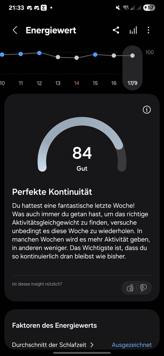 Le score énergétique, calculé à partir des données relatives au sommeil et à l'activité, est une nouveauté qui donne une idée de la performance quotidienne globale. Il est complété par des évaluations et des recommandations personnalisées.