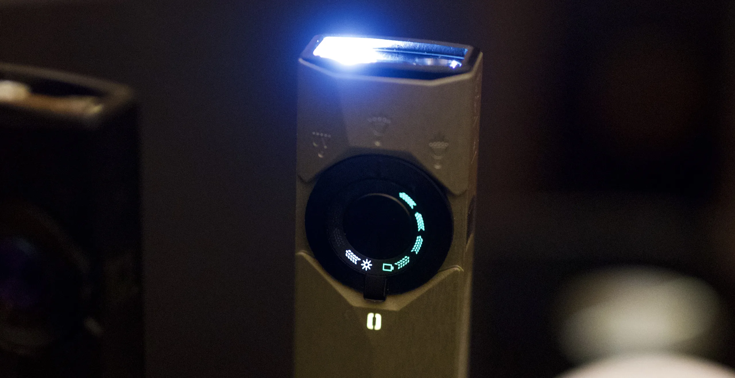 L'Arkpro introduit également un mode UV supplémentaire à faible rendement. Pour le reste, les performances UV correspondent à celles de son prédécesseur sur le réglage élevé. La puissance du laser reste inchangée, mais son fonctionnement est beaucoup plus simple. Le passage du laser à la lumière normale se fait désormais par une simple pression sur un bouton supplémentaire, facile à mémoriser. Avec l'Arkfeld Pro, les utilisateurs devaient mémoriser la combinaison, et nombre d'entre eux n'ont jamais réalisé que les deux modes pouvaient être utilisés ensemble. Avec l'Arkpro, vous pouvez même combiner le laser et la lumière UV. Dans l'ensemble, l'Arkpro est plus polyvalent que tous les modèles précédents. Nous apprécions également le sélecteur mécanique qui permet de passer d'une source lumineuse à l'autre. Lors de l'arrivée de l'Arkfeld Pro, nous avions considéré son design comme un pas en arrière par rapport à l'ancien Arkfeld à deux sources. Aujourd'hui, le sélecteur est à nouveau agréable à utiliser.