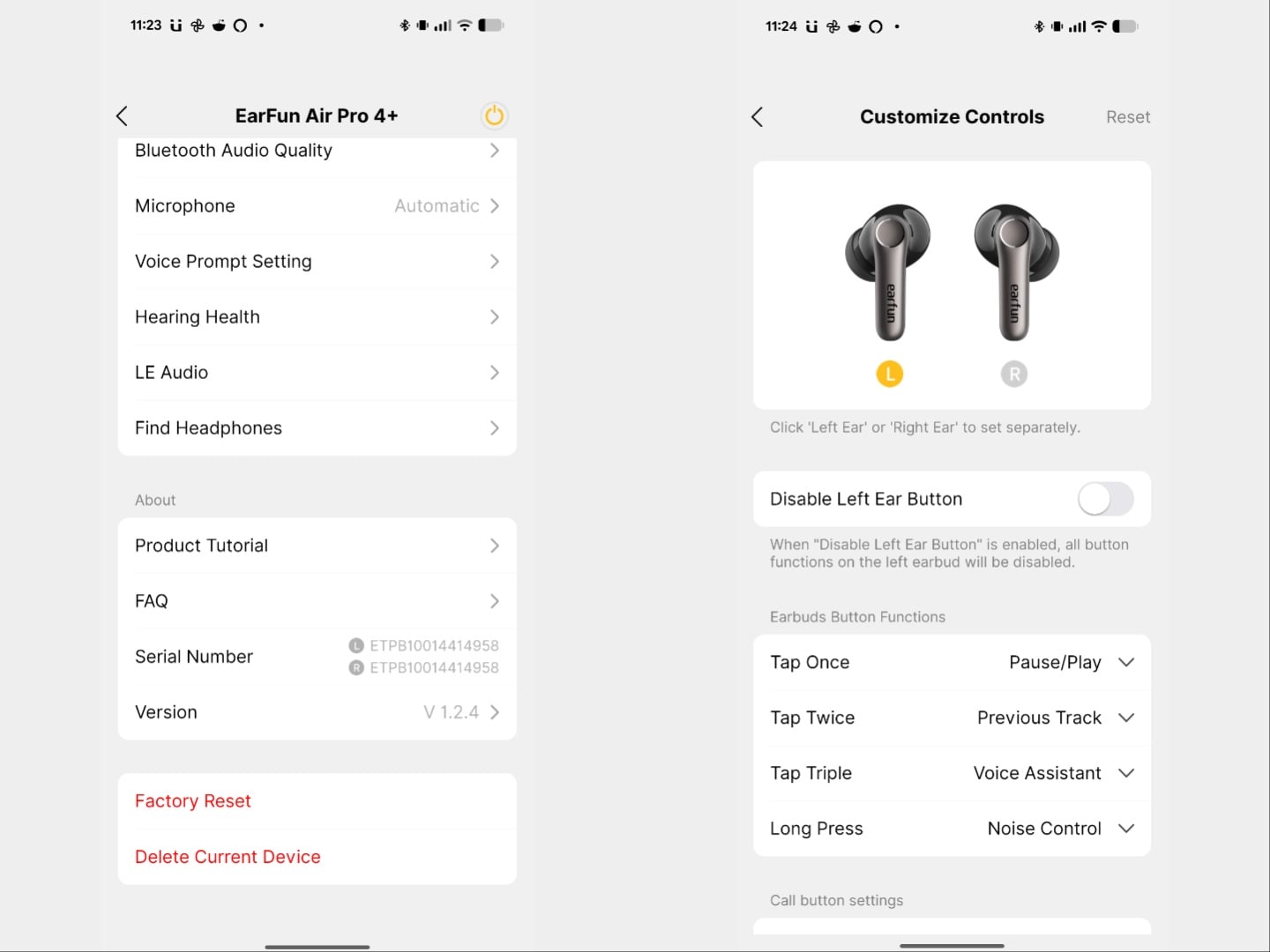 Les écouteurs prennent également en charge LDAC et aptX Lossless, ce qui, selon EarFun, élargit la plage de réponse en fréquence à 20 Hz - 40 kHz. Avec LDAC activé et un téléphone compatible (OnePlus Nord CE4), la scène sonore s'est un peu élargie par rapport à AAC. Le son était même meilleur, mais seulement légèrement, que celui de l'aptX Adaptive, car il permettait de changer manuellement le débit binaire à 990 kbps/909 kbps. L'activation de LDAC désactive la connexion à deux appareils et le mode de faible latence, typiques des écouteurs sans fil.