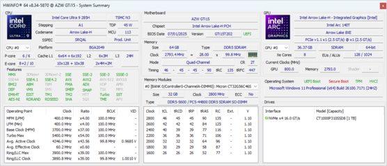 | GMK EVO-T1 Intel Core Ultra 9 285H ⎘ Intel Arc Graphics 140T ⎘ 64 Go Mémoire, 1024 Go SSD | Amazon: Prix de liste: 999€ | 946 g | 73.6 mm | x | |