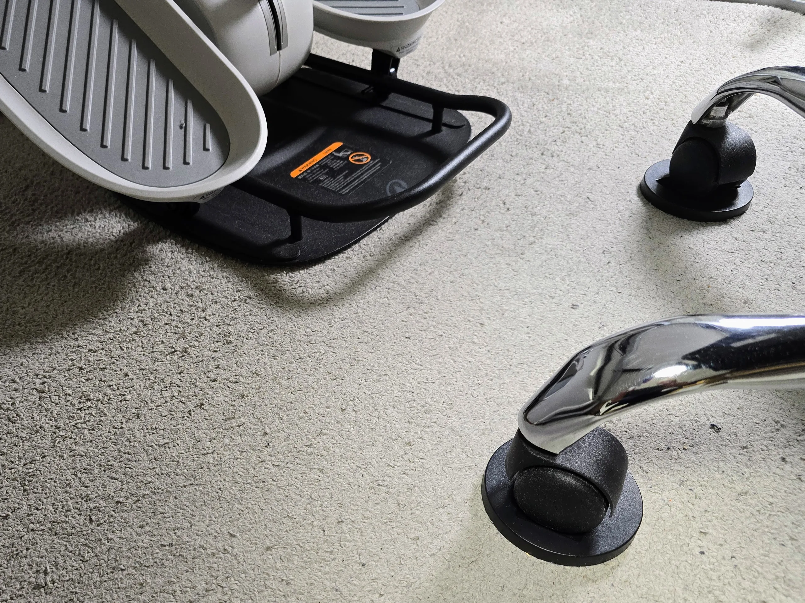 Le plus grand défi avec le Decathlon Active Desk n'est pas le montage ou l'utilisation, mais de le positionner correctement sous un bureau. Grâce à sa grande poignée et à ses roulettes intégrées, le mini cross trainer est facile à déplacer. Le vrai problème, c'est la chaise de bureau : une chaise à roulettes a tendance à rouler dès que vous commencez à pédaler.