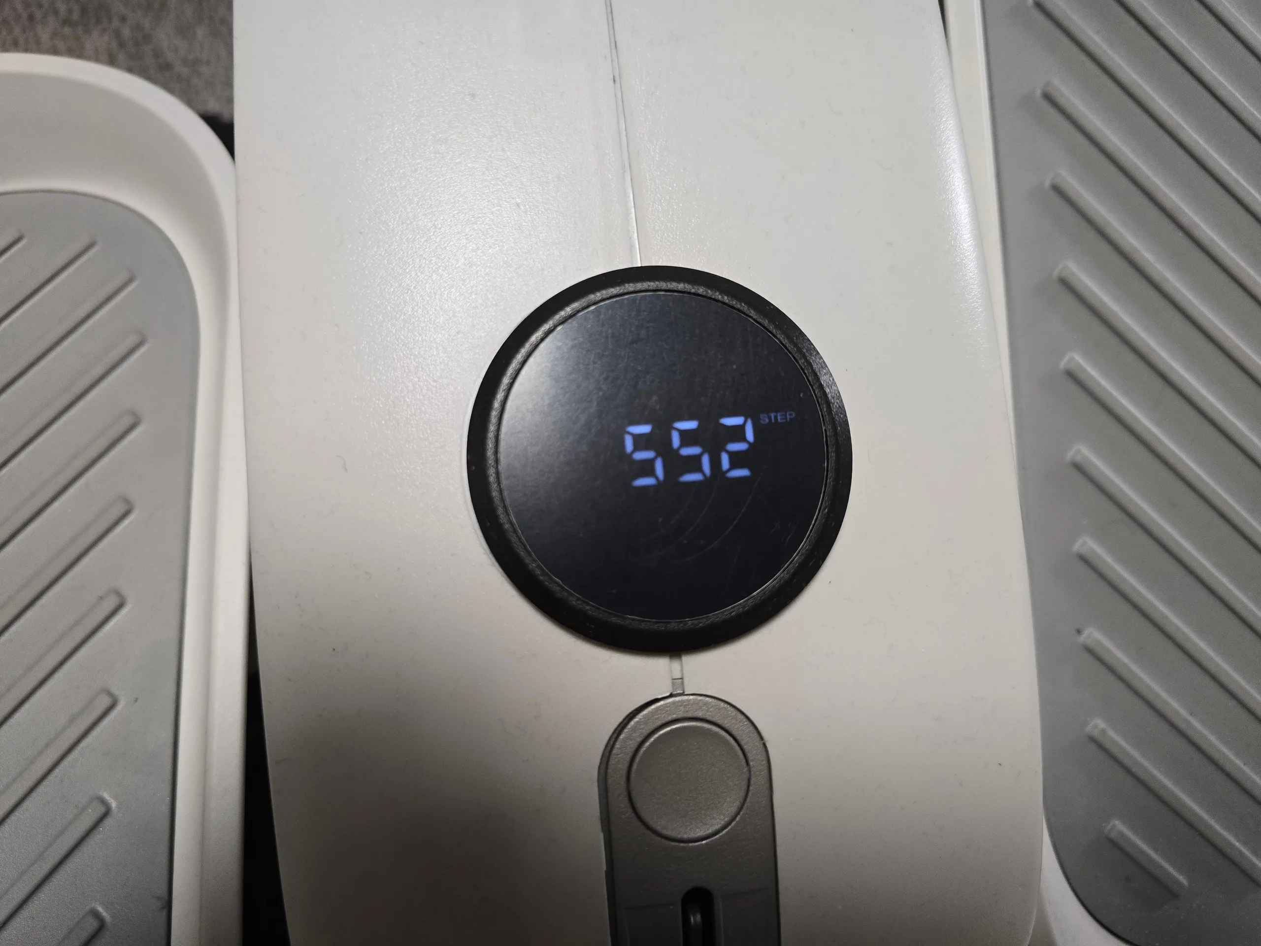 L'écran affiche le nombre de pas, la durée de l'entraînement, les calories brûlées et la distance parcourue. Il n'y a pas d'application ni d'interface de données. L'appareil peut être rangé en position verticale, ce qui permet de réduire l'encombrement au bureau.