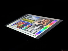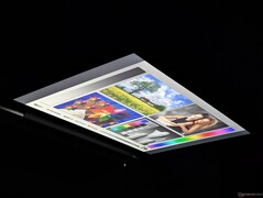 Cette option offre des couleurs sRGB complètes, mais avec des temps de réponse noir-blanc relativement lents, pas d'étalonnage des couleurs en usine et seulement un taux de rafraîchissement de 60 Hz. Les options d'écran tactile sont limitées à la dalle bas de gamme 300-nit, tandis que la dalle super-lumineuse est réservée à l'option Sure View. Pour la navigation de base, le streaming et l'édition d'images en amateur, notre écran de 400 lumens avec des couleurs sRGB est suffisant.