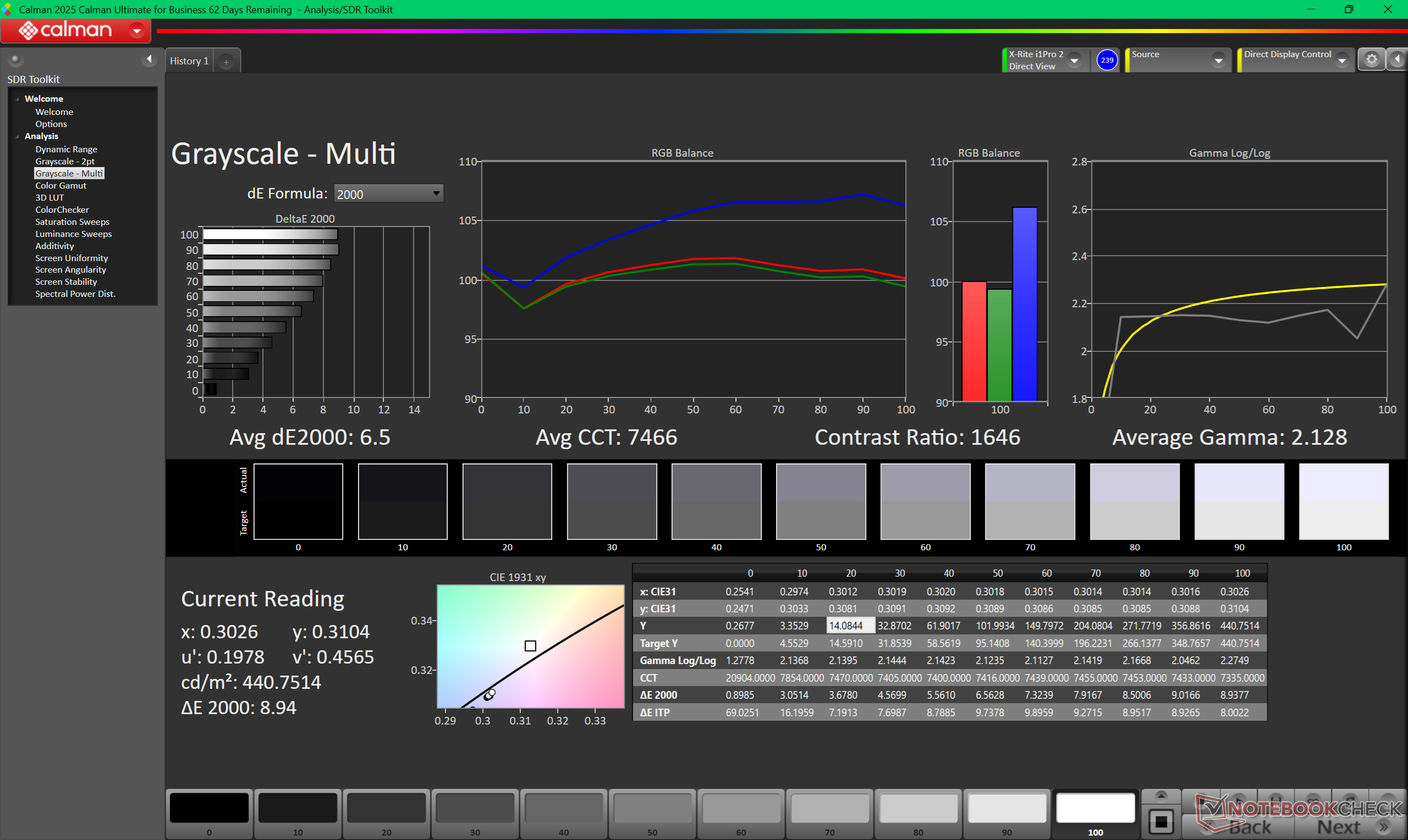 ΔE Greyscale Calman: 6.5 | ∀{0.09-98 Ø5}